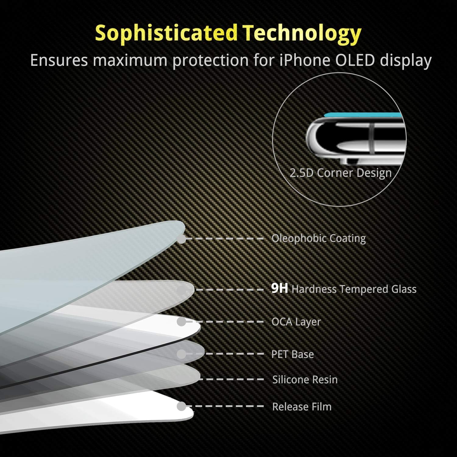 - Bubble-Free: Self-expels air bubbles when bonding with the screen, and coated with hydrophobic and oleophobic layers to repel oil residue from fingerprints.