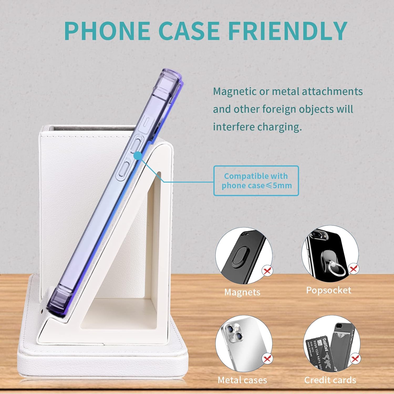 - 【Warm Tips】The cases made of metal, external attachments such as magnets, credit cards, grips, and stands will interfere charging(Please remove the 5mm or thicker case, metal case, magnetic case or credit card before charging)