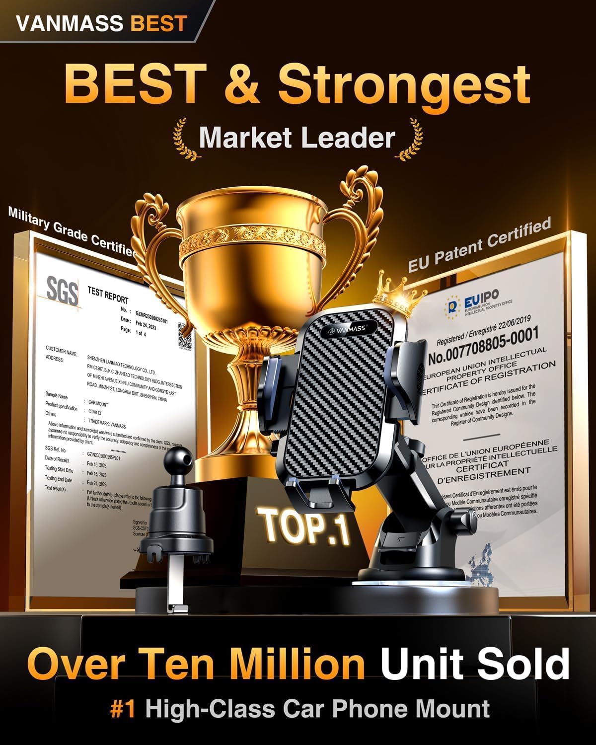 VANMASS Car Phone Holder 2025 Ultimate Military-Grade Phone Holder for Your Car Windshield Dashboard【Newest Best Strongest】 Cell Phone Car Mount with Patent & Safety Certs for iPhone Samsung Android