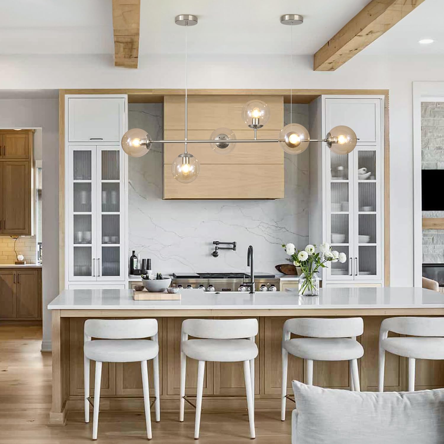 - Dining Room Light Fixture Application: The industrial hanging light emits ample glow to light up the whole space, no dark end. This 6-lights globe linear chandelier is suitable for kitchen island, dining room, kitchen sink, foyers, hallway, bedroom, living room, cafe, restaurant, study room. It’s definitely the best choice for your home lighting
