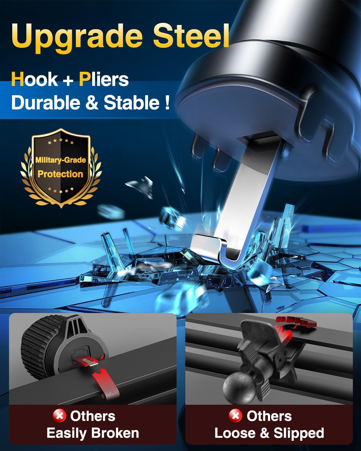 VANMASS Car Phone Holder Mount 2025 Upgraded [Patent Steel-Hook] Car Vent Phone Mount Clip Military-Grade Shockproof Cell Phone Car Mount Handsfree Truck Stand Vent Cradle for iPhone 16 Android,Black