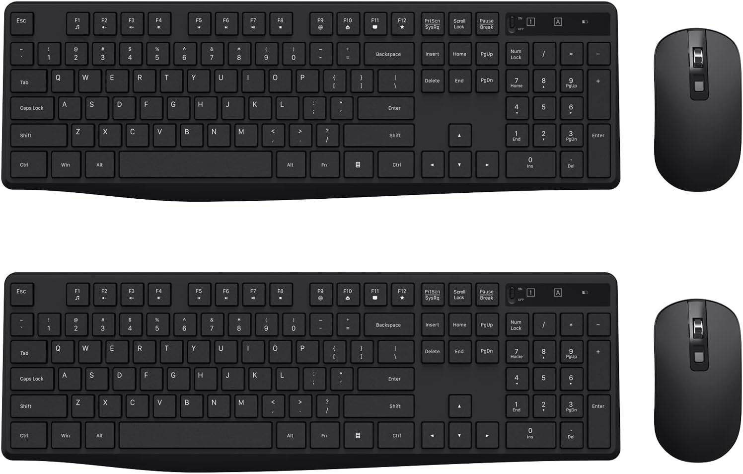 - Power Saving Extends Battery Life-- Keyboard and mouse wireless have power switch to turn on/off, saving unnecessary battery loss. After 10 minutes of inactivity, the wireless keyboard mouse combo will automatically go into sleep mode to save energy. The keyboard requires one AAA battery, and the mouse requires two.