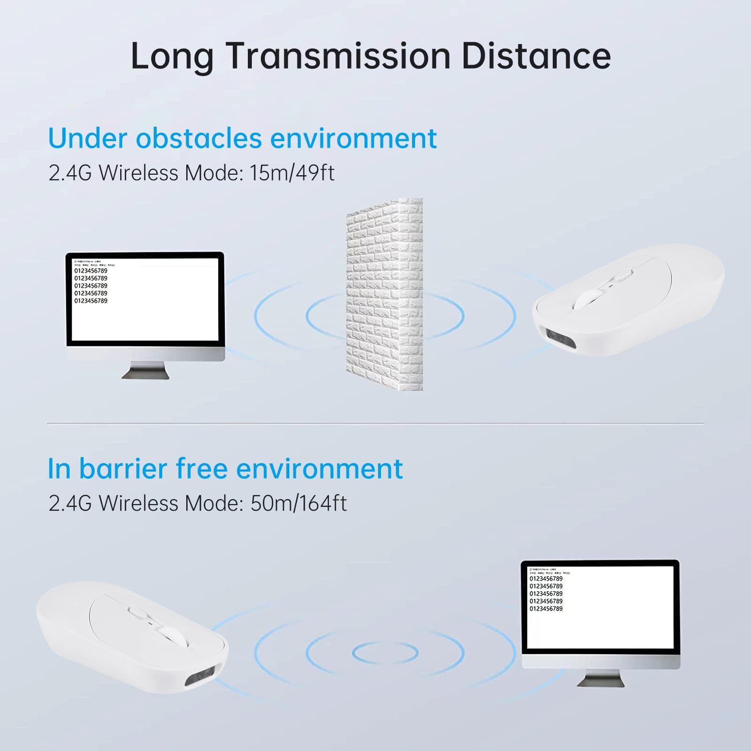 - 2.4GHZ Wirlesss Transmission, Enjoy 30 Meters Freely Transfer Data, Scanner And Mouse Share One Receiver.(NOT support Bluetooth)