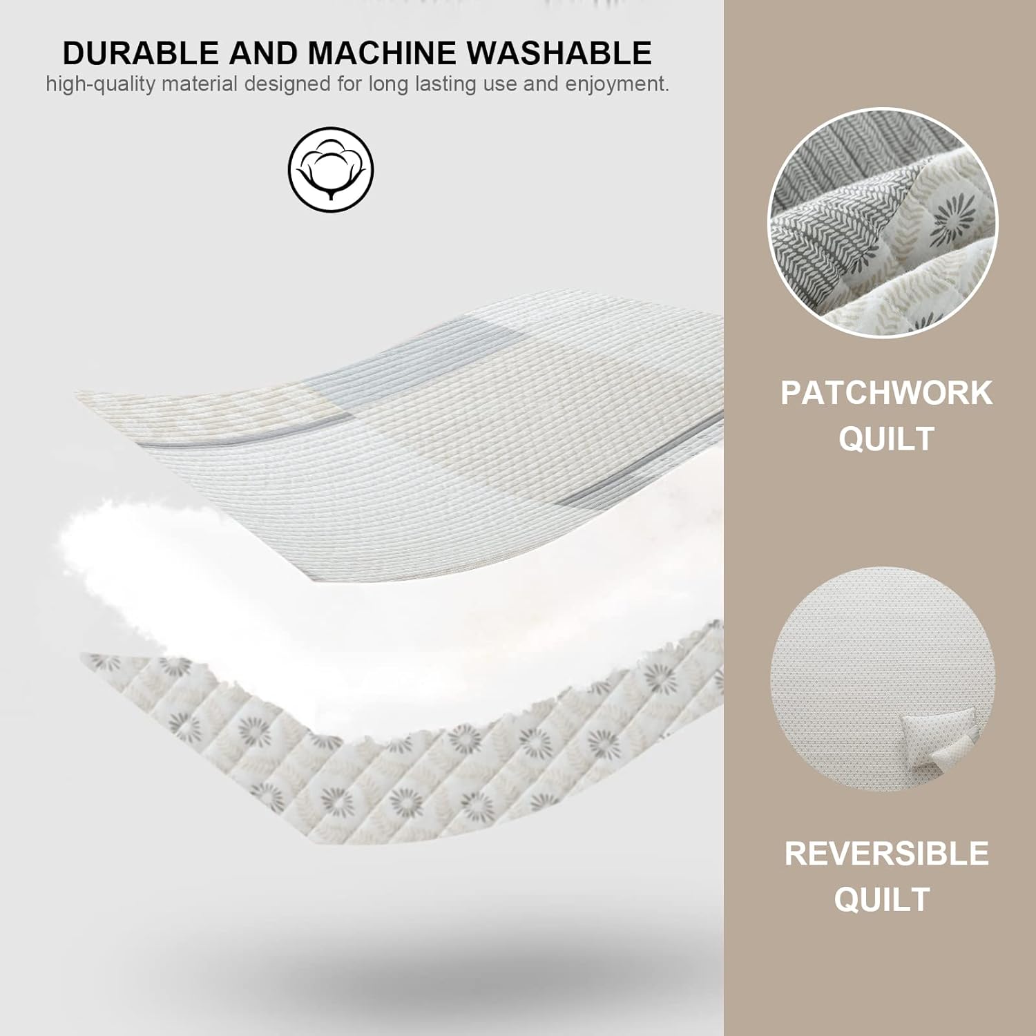 - [100% Cotton Quilt] - 100% natural cotton quilt set,healthier and more breathable.Soft,skin-friendly and durable.