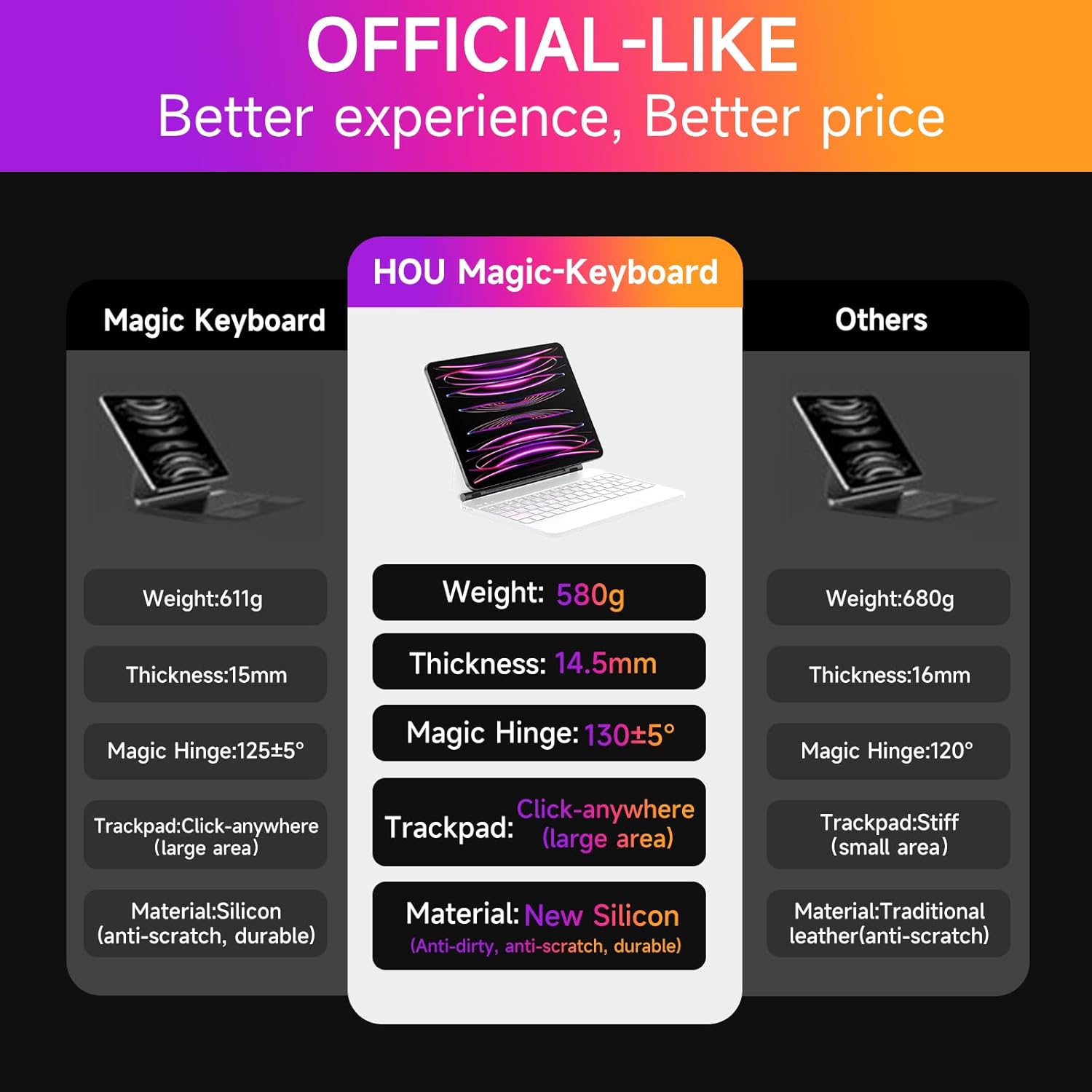 - ⌨️ Silent Tactile Keyboard: Silky-silent keystrokes 🤫 – perfect for libraries/cafes! Full iPadOS shortcuts + Hall-effect sensors for zero-delay typing.