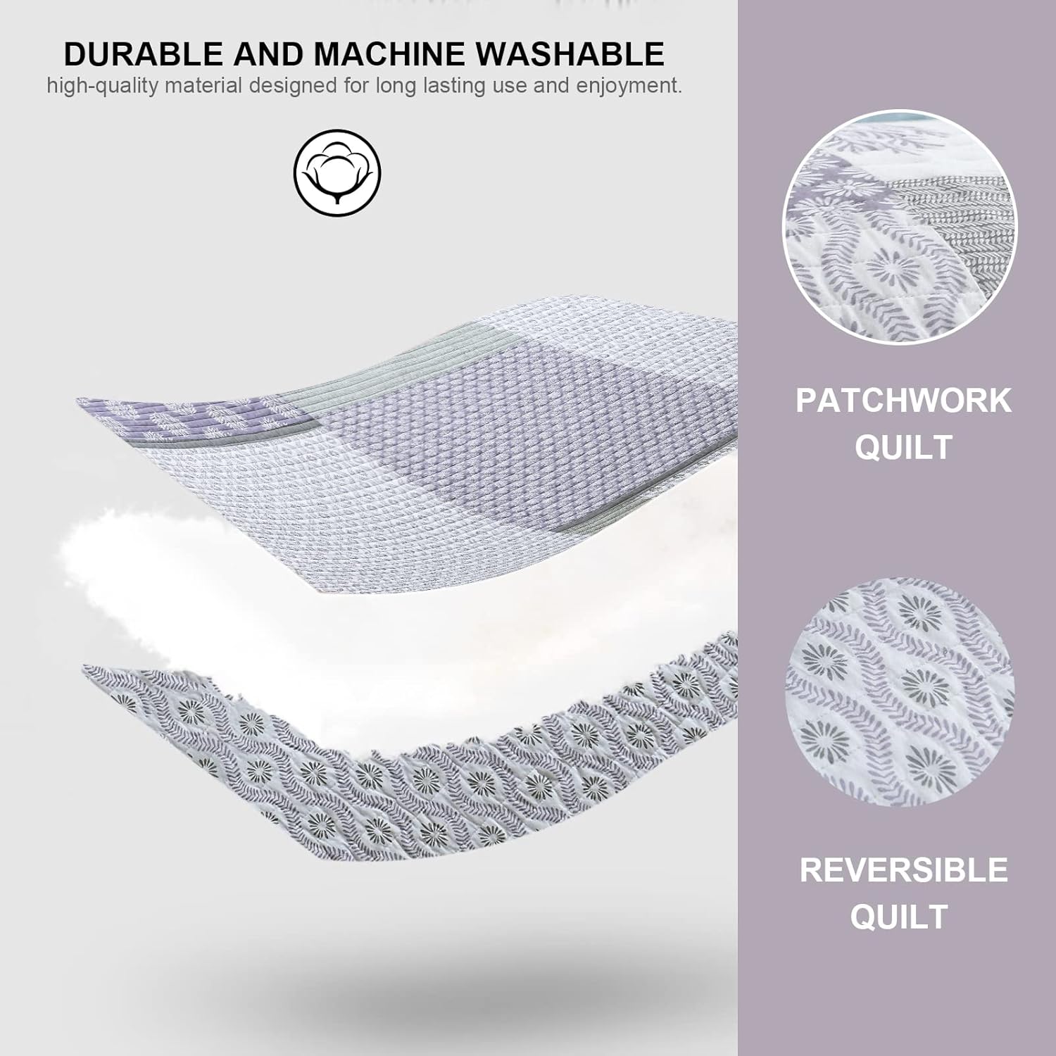 - [100% Cotton Quilt] - 100% natural cotton quilt set,healthier and more breathable.Soft,skin-friendly and durable.