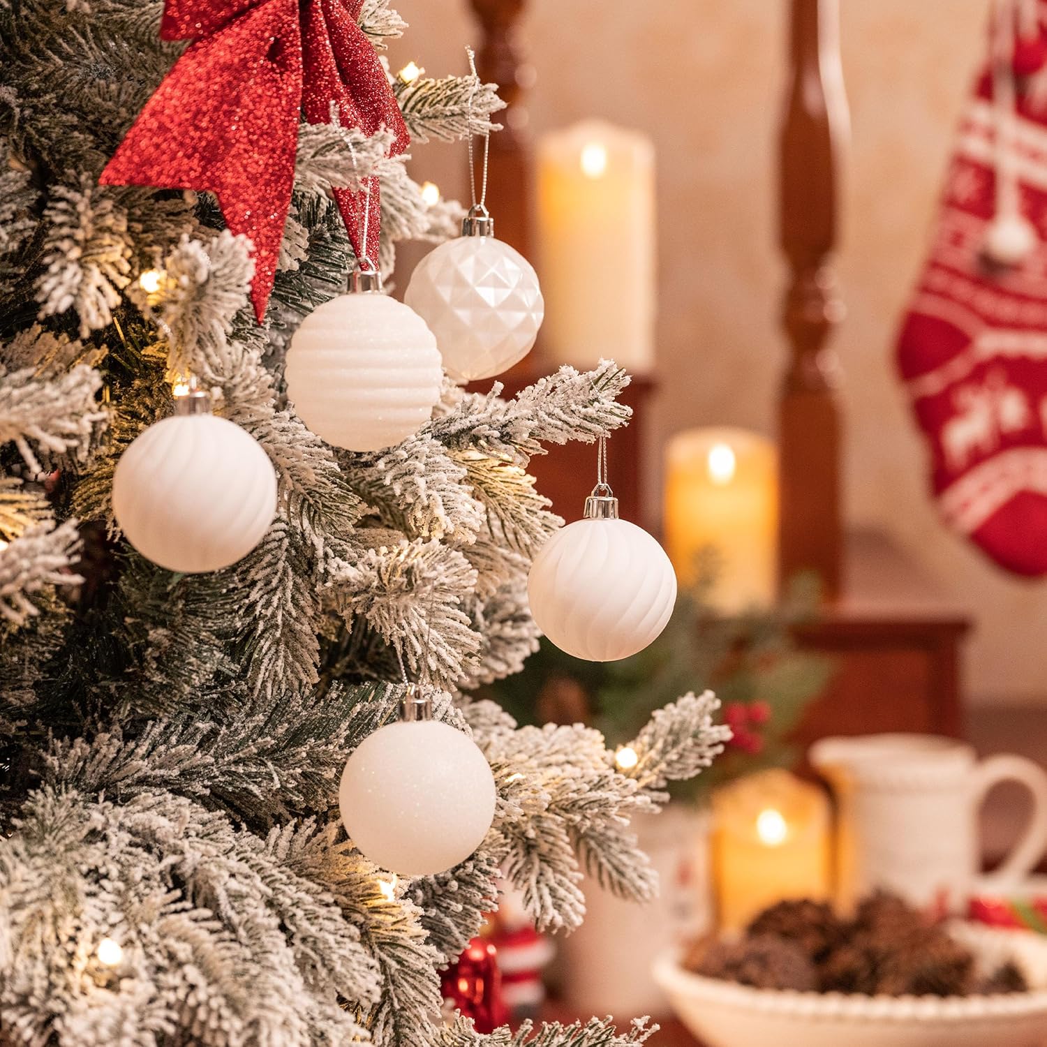 Valery Madelyn Christmas Ornaments Tree Decorations Set for Fall Halloween, 24ct White Shatterproof Ball Ornaments, 2.36" Hanging Ornament Bulk for Xmas Holiday Party Decor