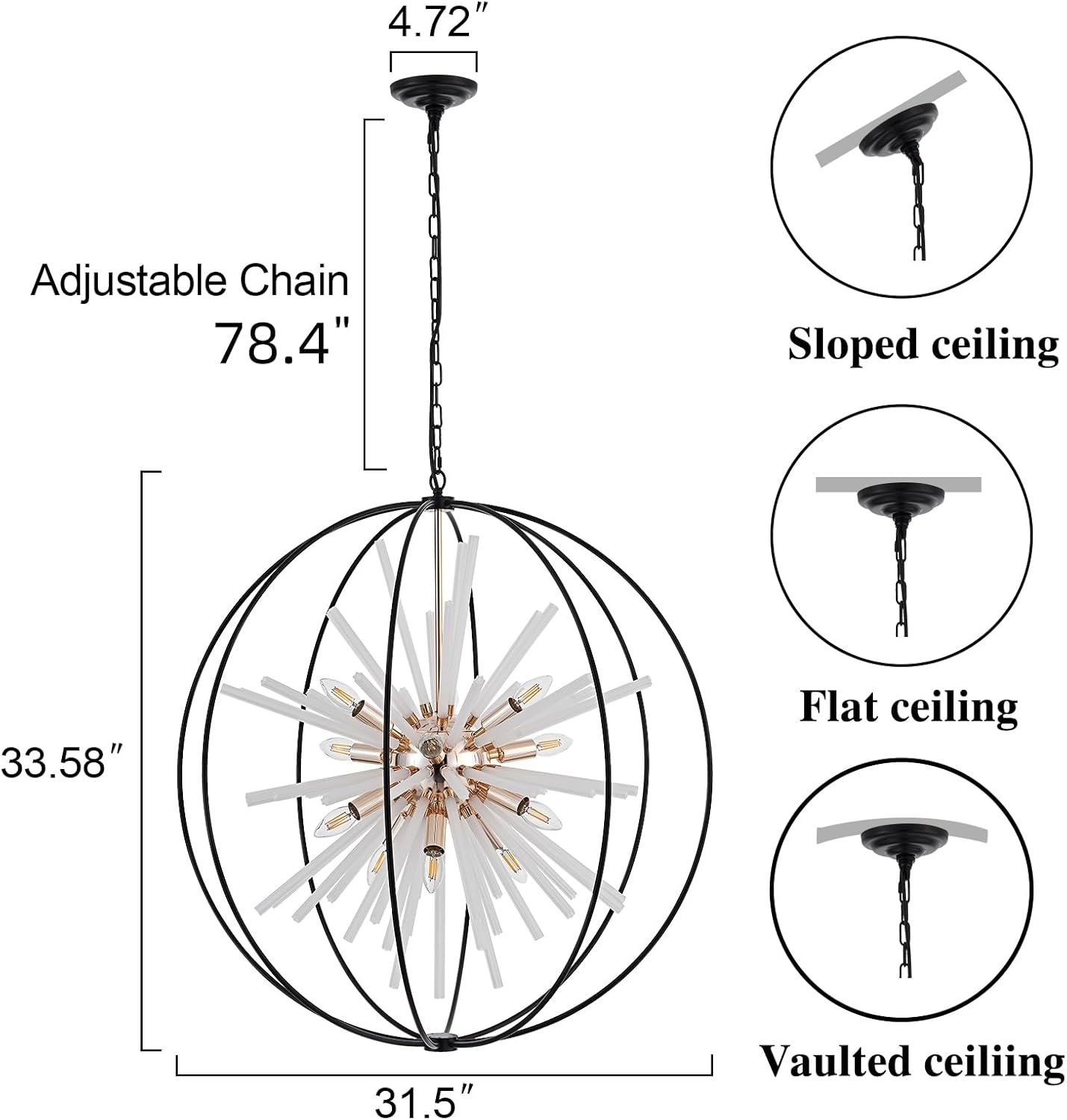 - 【Customized & Adjustable Height】This size D31.5"X H33.58", The total height of the Foyer Light Fixtures is 71.58 in, of which the length of the chain is 37.99 in, and the diameter is 31.50 in. Compatible with flat, sloped, and vaulted ceilings, Modern Chandelier can easily customize the height according to your preferences.