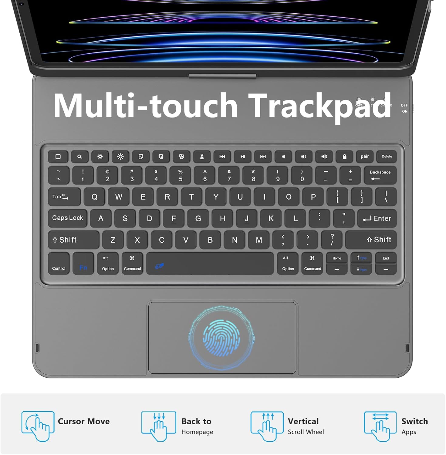 - 【Multi-Touch Trackpad Keyboard Case for ipad】Integrated multi-touch trackpad with plentifultrackpad gestures,you can turn your tablet into a highly performant and easy to use laptop! Edit documents, navigate applications and build presentations with unparalleled speed, precision and accuracy by using the iPad keyboard case,Improve work and study efficiency.