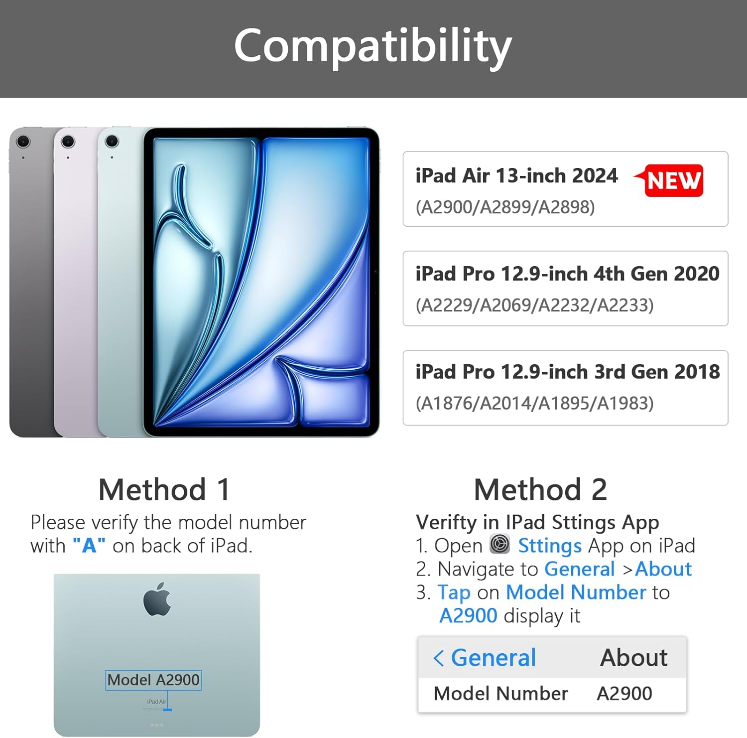- 【Touch Keyboard Case for iPad Air 13 (M2) 2024】Compatible with: For iPad Air 13-inch 2024: A2900 A2899 A2898, For iPad Pro 12.9-inch 4th Generation 2020: A2229/A2069/A2232/A2233, For iPad Pro 12.9-inch 3rd Generation 2018: A1876/A2014/A1895/A1983. Please check the back of your For iPad to confirm the model "AXXXX" before purchasing to prevent size errors (Stylus Pencil not included)