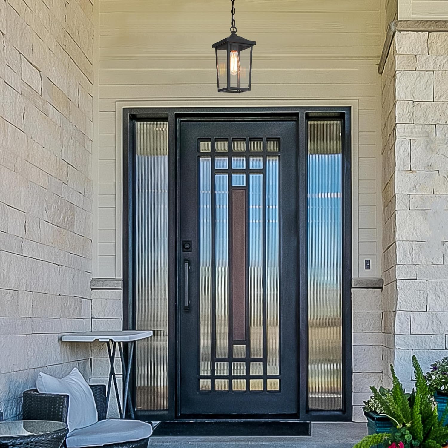- Elegant Outdoor Hanging Light: Transform your outdoor area with this stylish hanging light fixture, merging practicality and refined design. The fixture features a sleek lantern silhouette with crisp lines, perfect for enhancing your porch or patio. Its clear glass shade pairs seamlessly with the durable metal frame, finished in a sophisticated matte black. This light adds a touch of classic charm while offering a modern farmhouse aesthetic to your space. Light up your evenings with this chic and functional outdoor piece.
