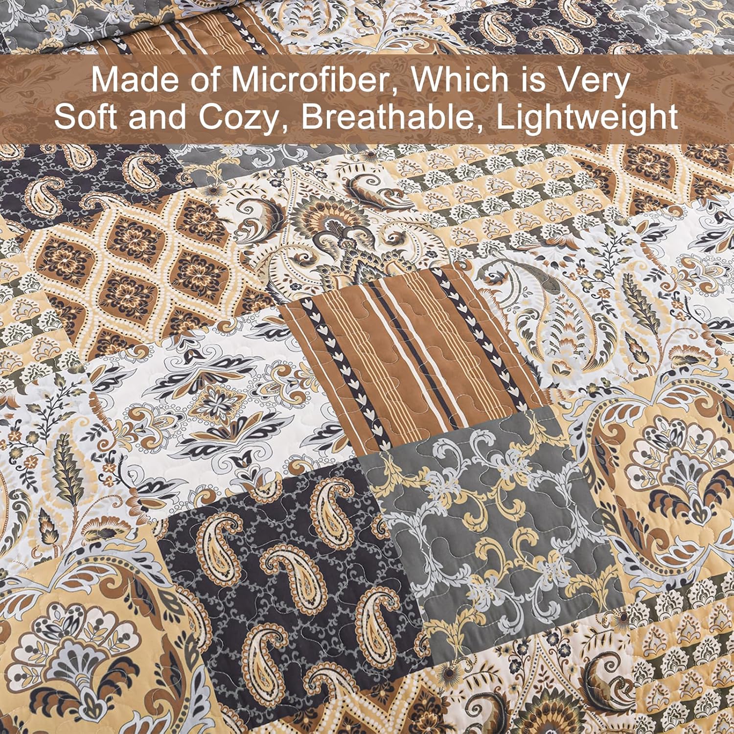 - SOFT MICROFIBER BEDDING SET:Dark brown patchwork quilt queen size bedding is made from high-quality microfiber, our quilt sets queen is soft to touch, lightweight, and breathable. The firm stitch ensures long-lasting durability.