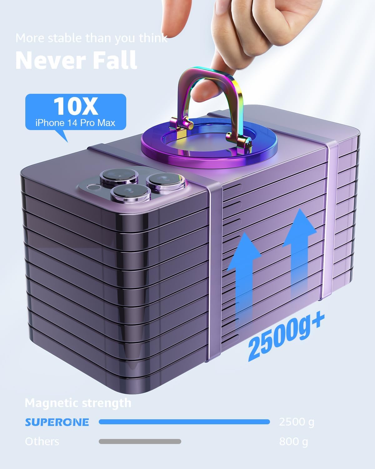 - 🧲Strongest N55 Magnets to Protect Your Phone: The magnetic ring holder is equipped with 20 top-grade N55 magnets with a magnetic force of up to 5.5 lbs, securely holding your iPhone 16/15/14/13 series and MagSafe phone cases, never worry about your phone falling off.