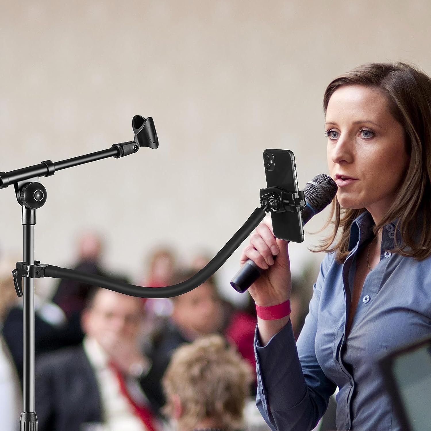 Gooseneck Phone Holder for Mic Stand/Music Stand/Stroller/Treadmill/Spin Bike/Exercise Bicycle,50 cm Long Flexible Gooseneck Arm Super Crab Clamp Mount,Compatible with 3.5~7.5" iPhone Devices