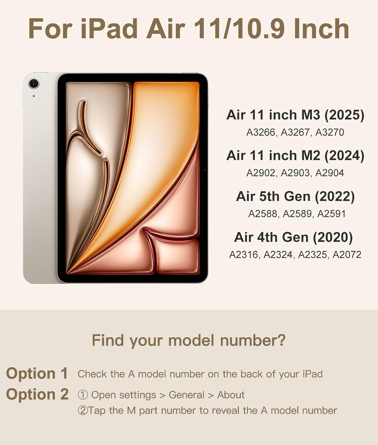 - ❤【Perfect Compatibility】Specially designed Compatible with iPad Air 11-inch (M3) 2025 (Model Number: A3266/A3267/A3270), for iPad Air 11-inch (M2) 2024 (A2902/AA2903/A2904), for Air 5th Generation 2022 (A2588/A2589/A2591), for Air 4th Generation 2020 (A2316/A2324/A2325/A2072), this keyboard case offers precise cutouts for all ports, buttons, and cameras, seamless access to all features without removing it. Please find the No. "AXXXX" of your tablet before order(Open settings > General > About, Tap the M part number to reveal the A model number)