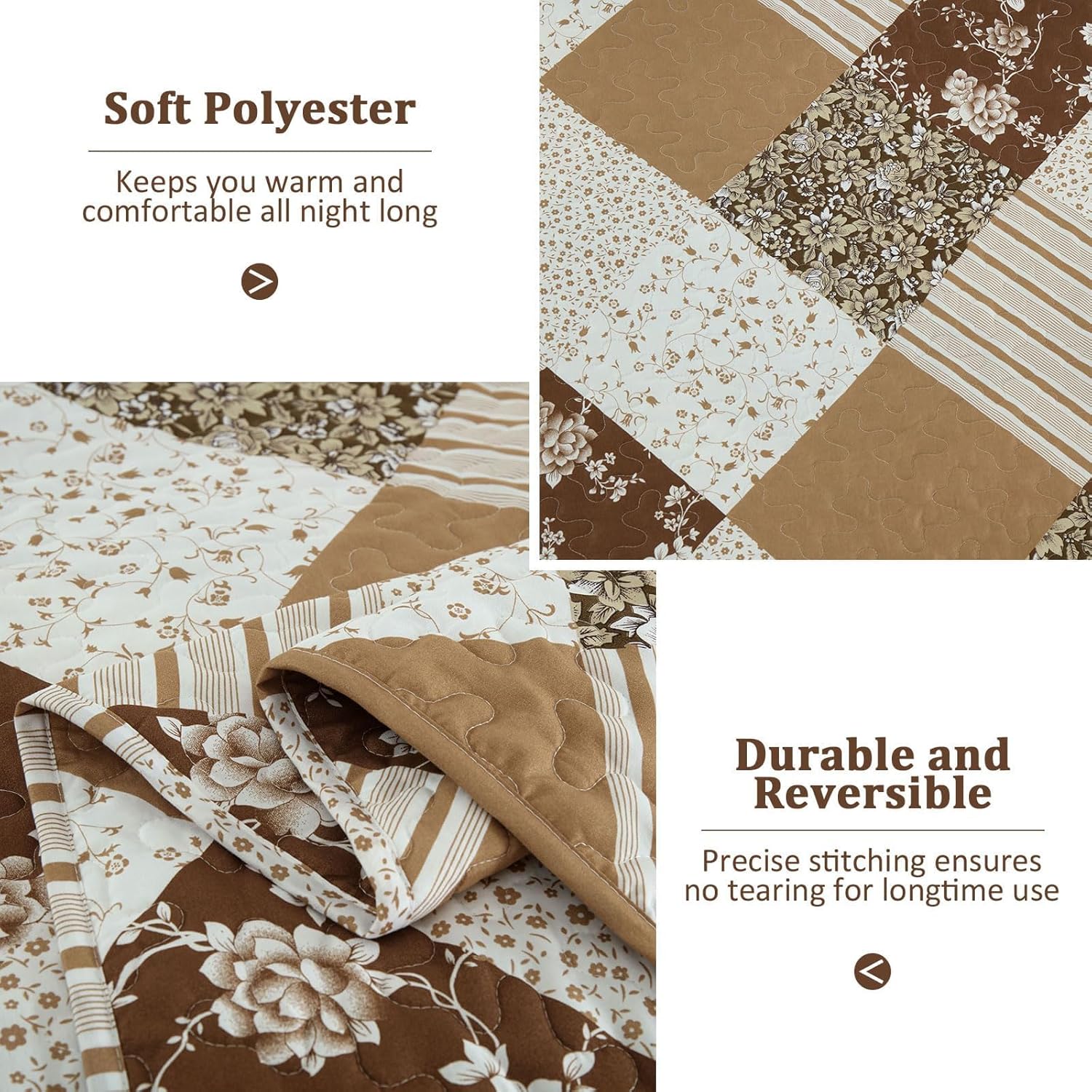- 【What You Can Get】: The brown qulit set comes with 1 piece king size quilt (110" x 90"), 2 pieces pillow shams (20" x 36"). We provide customer service, if you have any question, please contact us, you will get a reply within a short time.