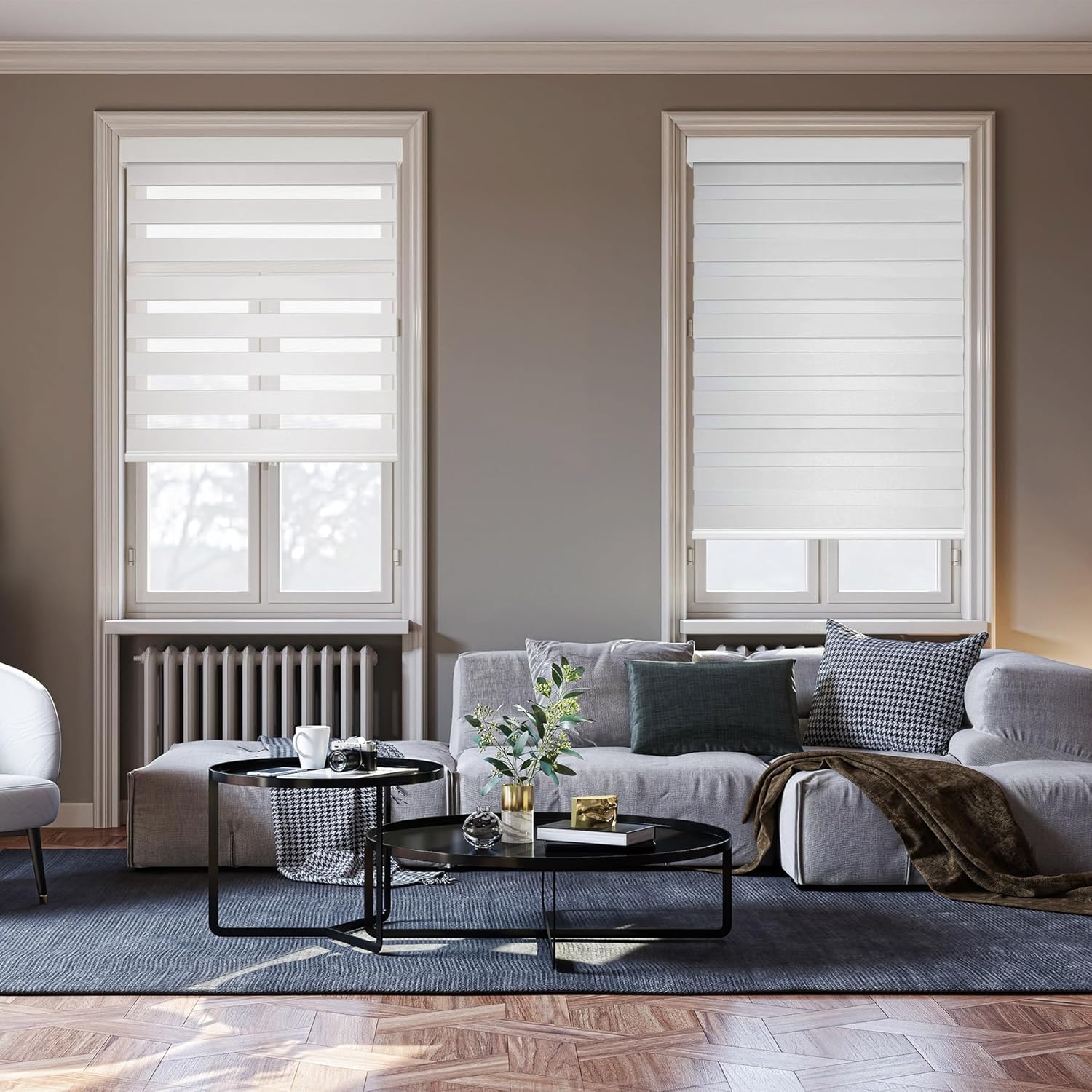 - 【Various Room Styles】Crafted from premium voile and polyester, this double-layer roller blinds for indoor windows adjusts light effortlessly. Fit for any room: block out light in bedrooms and nurseries for restful sleep, or filter light in living rooms, kitchens, and studies for a cozy atmosphere.