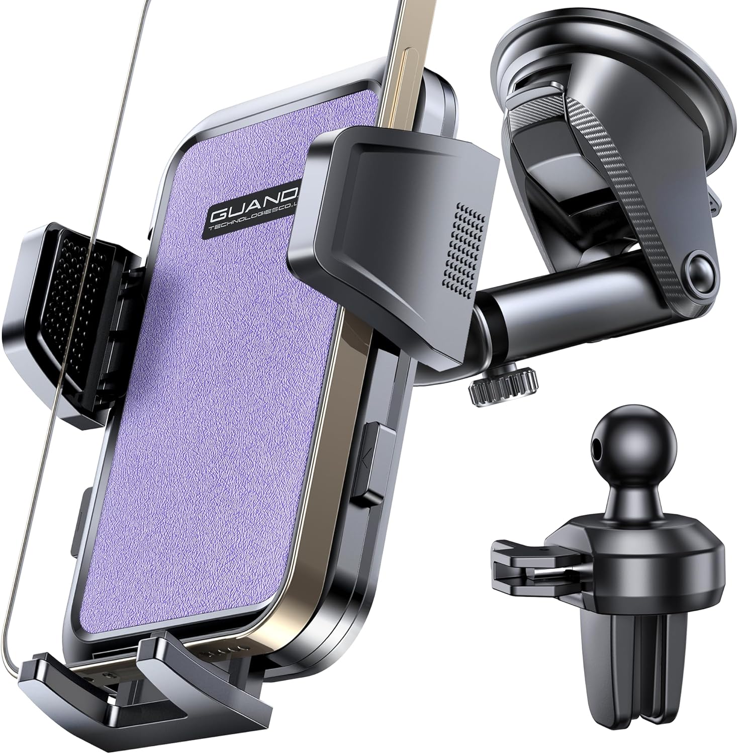 - Leading Stability: The 2025 newest Guanda car phone holder features a three-layer nano-gel suction cup and a Japanese dashboard pad for double insurance, making the suction of the car phone mount 370% stronger than traditional suction mounts. The Guanda suction cup can withstand temperatures from -20°C (-4°F) to 85°C (185°F) and can be reused. Note: The car phone holder is NOT compatible with foldable cell phones, such as Galaxy Fold and Z Clip Series