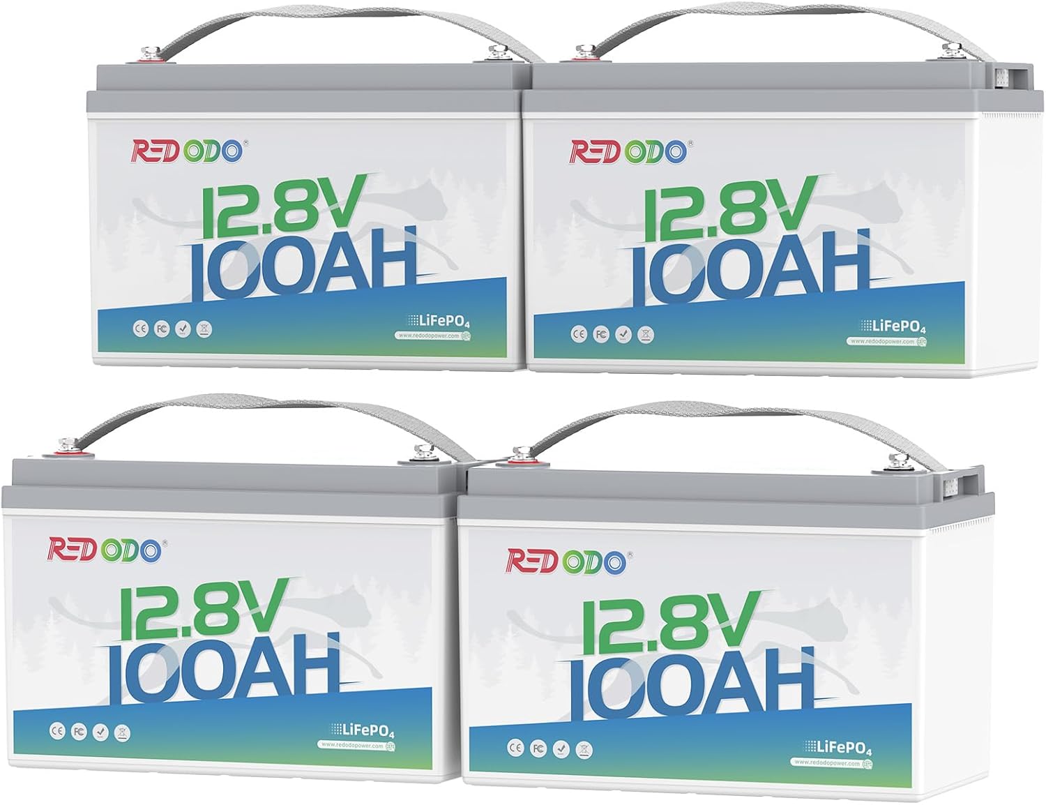 Redodo 4 Pack 12V 100Ah Lithium LiFePO4 Battery, Group 31 Battery Built in 100A BMS, Up to 15000 Cycles, 10 Years Lifetime, Perfect for RV, Off Grid, Solar, Marine, Trolling Motor