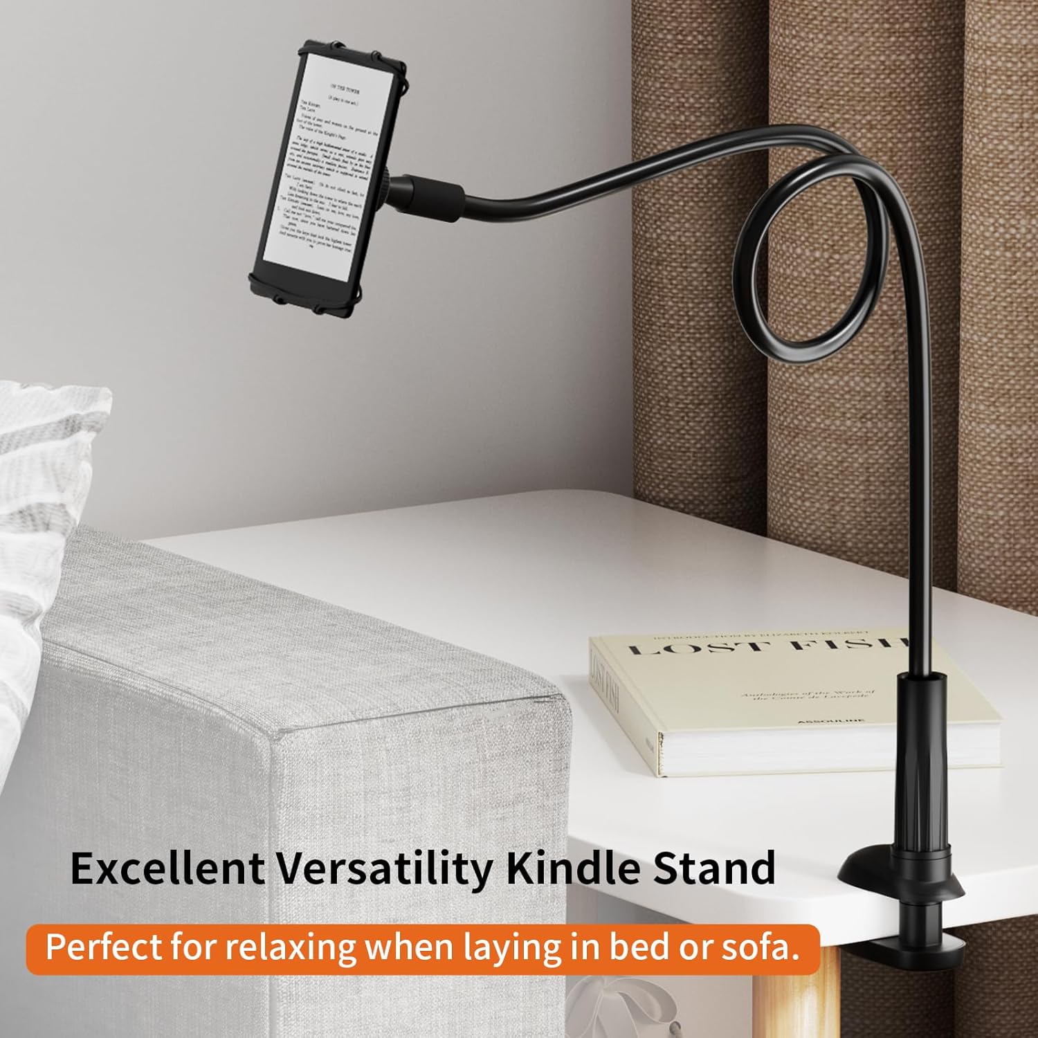 Gooseneck Kindle Holder for Reading in Bed - [Anti-Slip] Phone Holder for Bed, Kindle Paperwhite Stand Accessories, Overhead Cell Phone Clamp Mount for Desk, for Tablets 4-10 inches