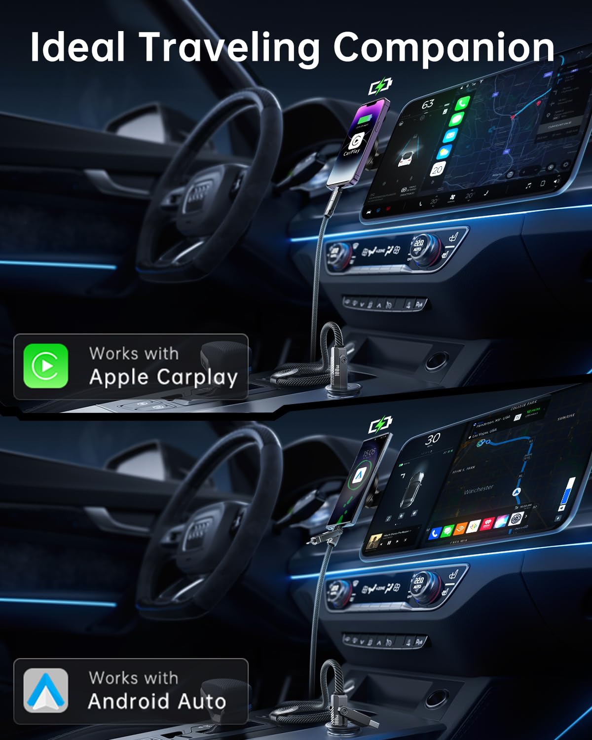 - Apply Carplay & Android Auto Support: The SHEZI 4-in-1 charging cable can be compatible with Apple CarPlay and Android Auto System. Keeps stably connected during the whole driving journey. But before using CarPlay, please confirm whether your vehicle supports the CarPlay system.