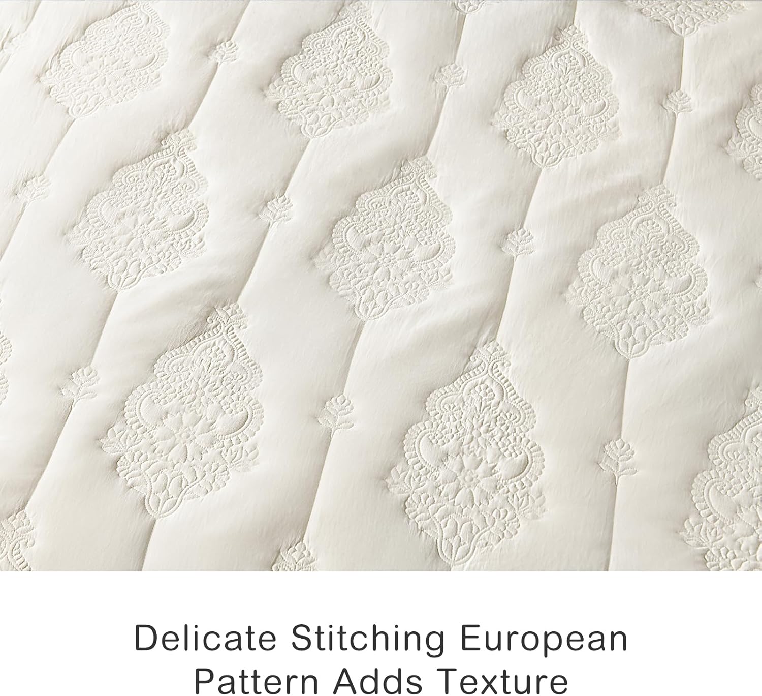 HORIMOTE HOME Ivory Quilt Queen Size Floral Quilt Bedspread Lightweight Soft Pre-Washed Microfiber Bedcover, 3 Pieces Thin Comforter Bed Cover Bedding Set for All Season