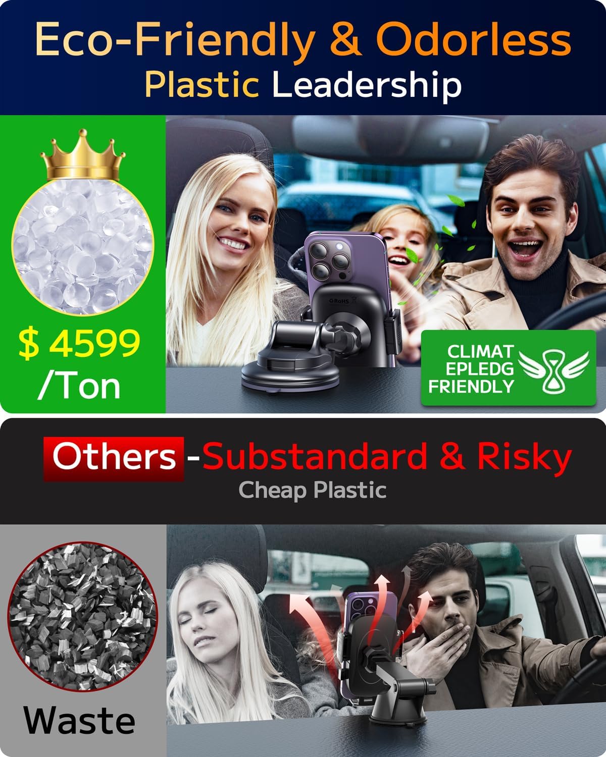 - Versatile Car Phone Holder: This dash cell phone mount for automobiles boasts superior suction power and an enhanced air vent clip, providing versatile installation options on windshields, dashboards, and air vents.