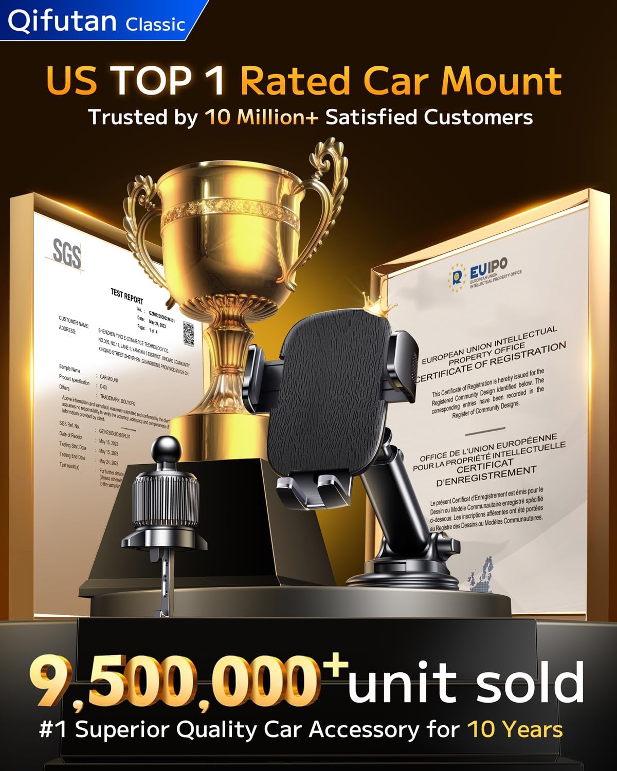 Qifutan Dash Mounted Phone Holders for Your Car Dash Phone Mount for Car Dashboard Air Vent Multi-Mount 3 in 1 Vehicle Windshield Holder Compatible Multi-Device Clip