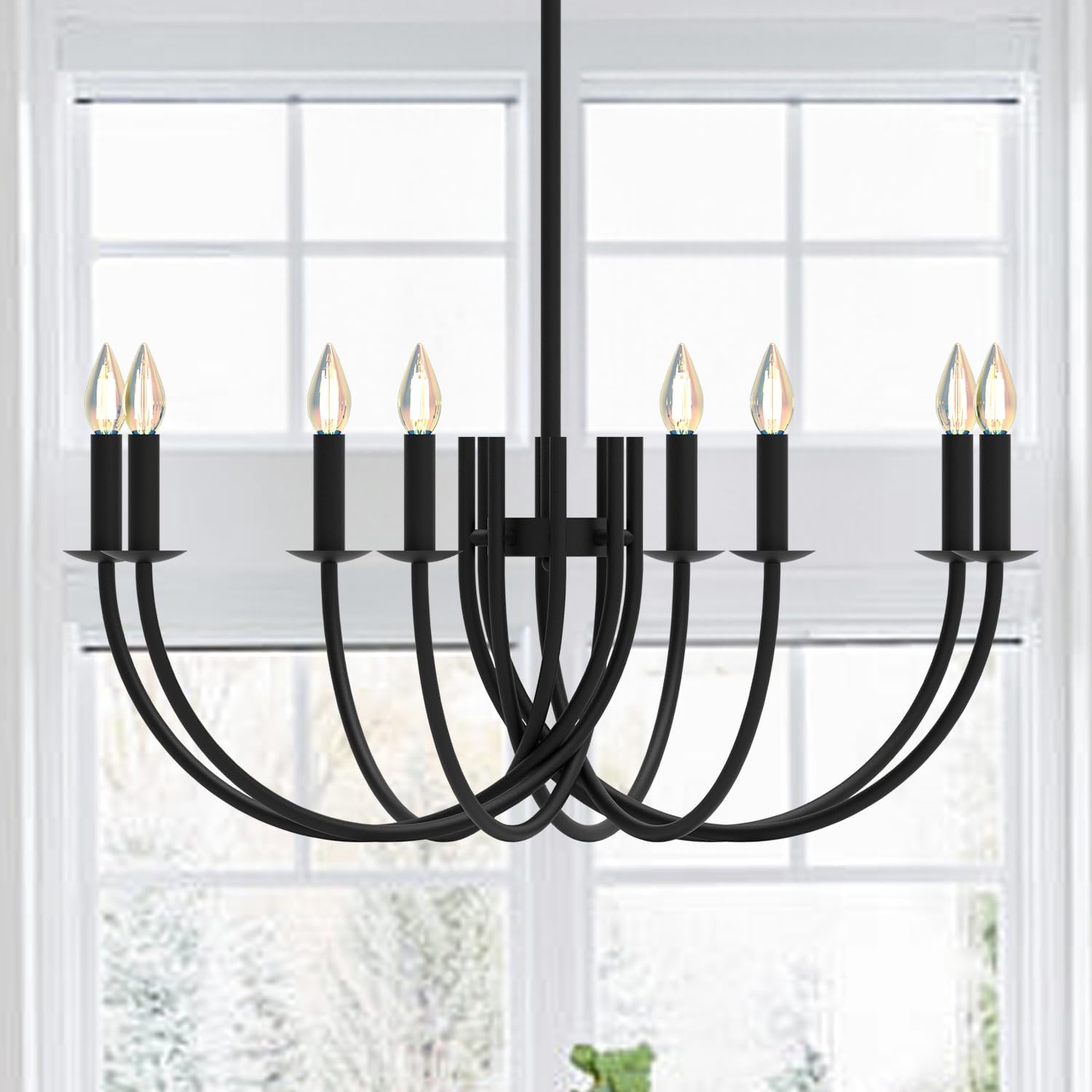 - 【LED E12 Bulbs】 The large black chandelier light use LED E12 bulbs. The LED E12 bulbs are easy to install.