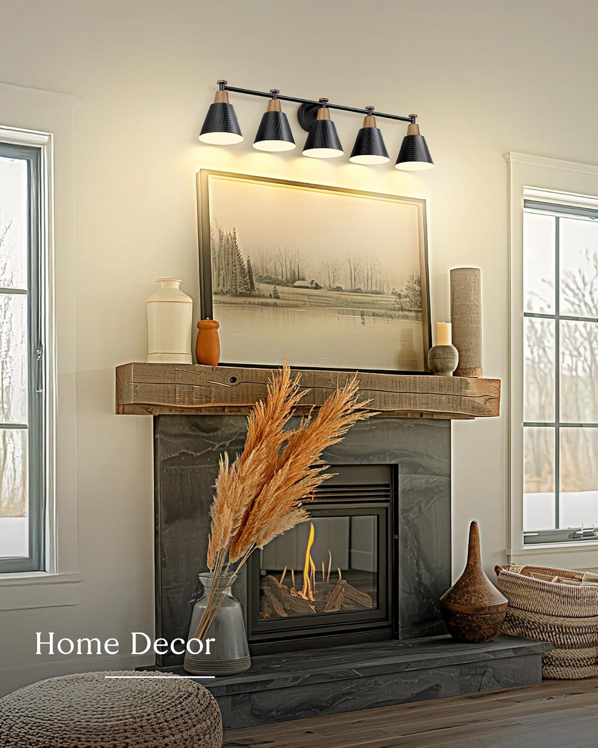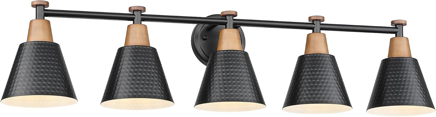 - Refined & Reliable Illumination – ETL listed for safety, this black bathroom light fixture combines farmhouse charm with sleek modern appeal. Featuring a 5 light bathroom vanity light design, it not only adds sophistication but also delivers dependable performance.