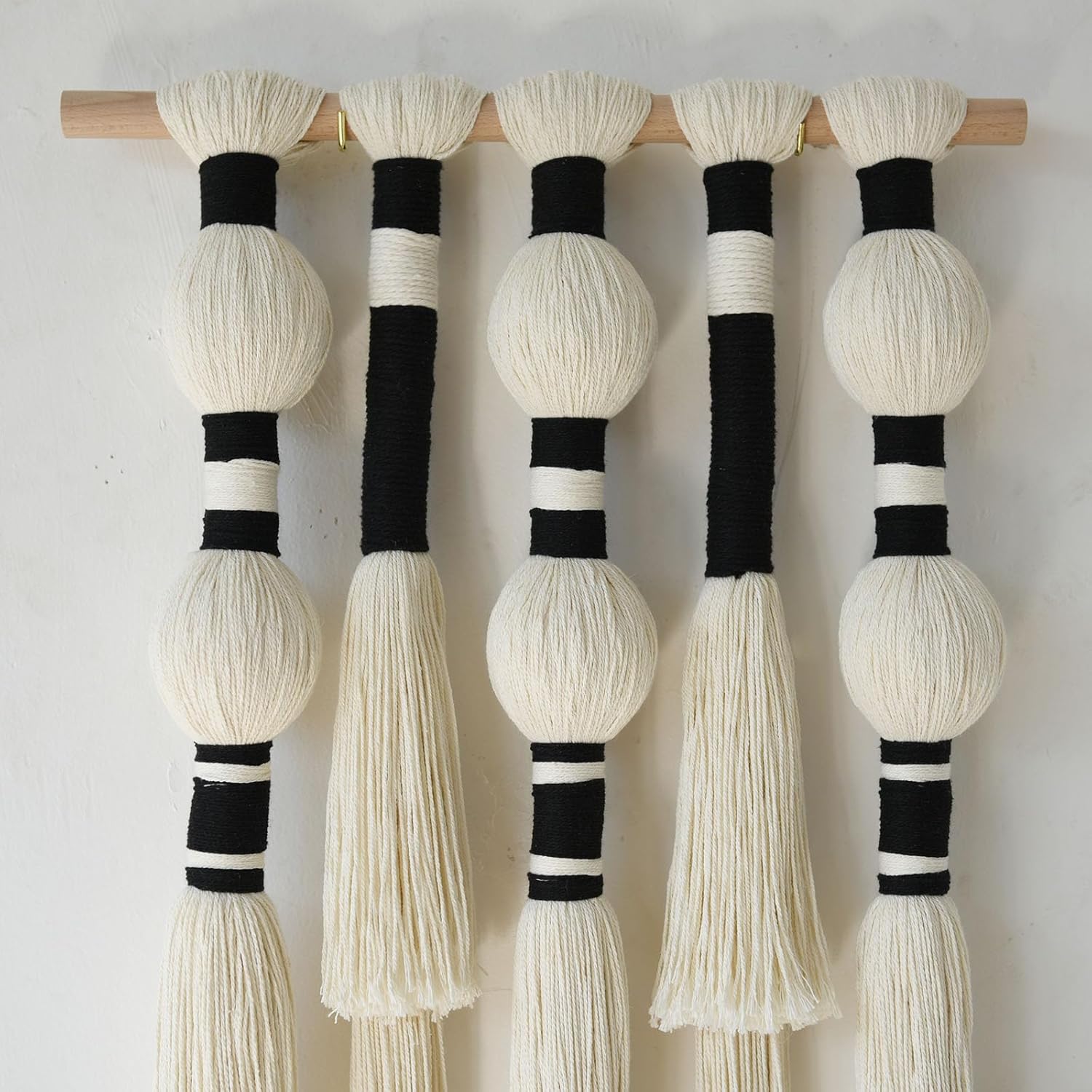 Macrame Wall Hanging Tassels Sphericity Cotton Textile Hanging Geometric Yarn Wall Art for Bedroom Living Room Decor 15.7" W x 39" L