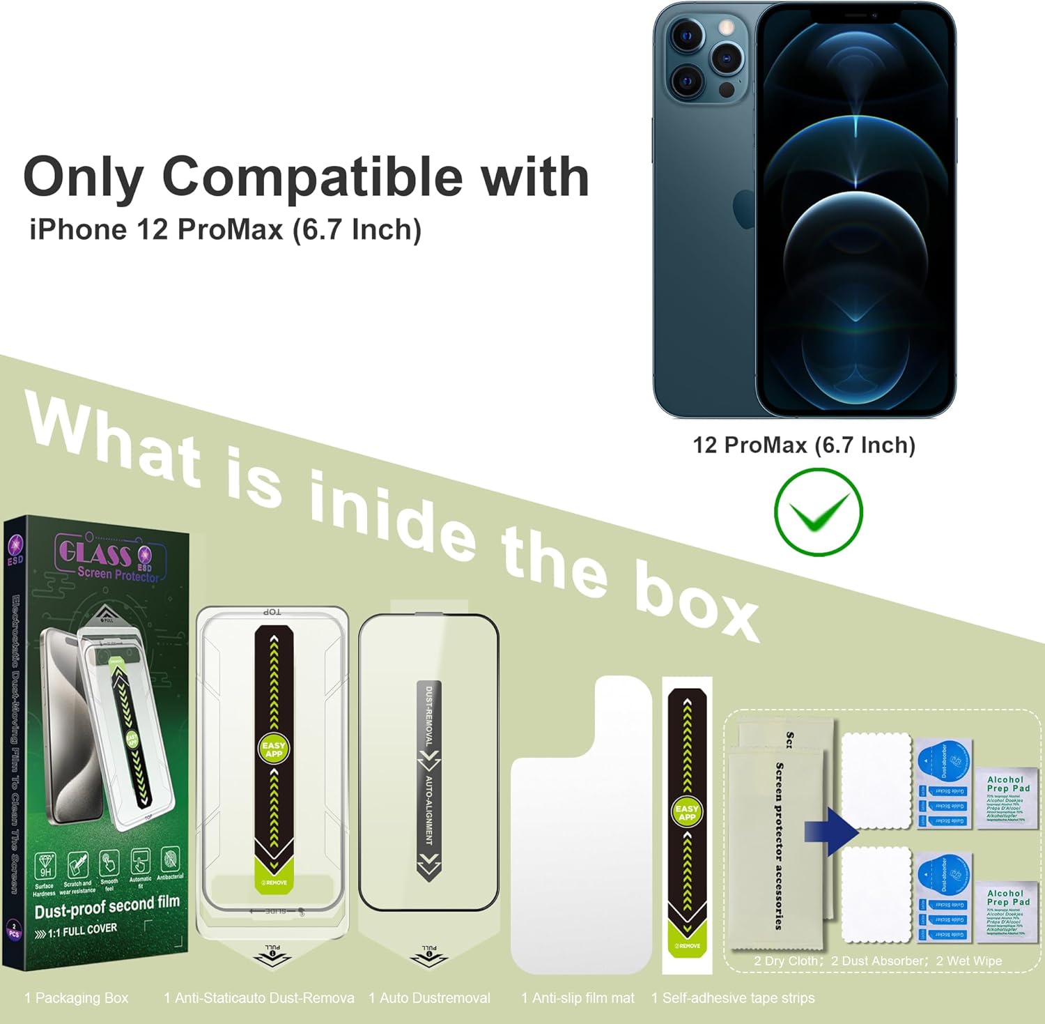 (2-Pack Ultra HD Clear Screen Protector for iPhone 12 Pro Max (6.7-Inch),9H Tempered Glass,Full Coverage,Anti-Fingerprint,Auto Dust Removal,Bubble-Free,Easy Installation