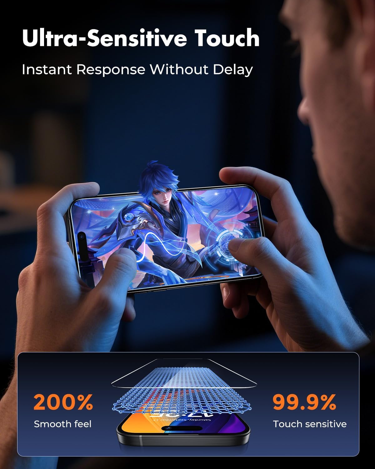 - 【Easy Installation & Bubble free】: The UNBREAKcable screen protector is specially designed for iPhone 15 Pro 6.1 inch screen, 100% touch accurate. It's a two-pack and comes with an auto-alignment installation frame for effortless adhesion. Super easy to install. Thanks to its auto-adsorption technology, can self-expel any air bubbles for easy installation. Leaves no traces when disassembled. The perfect crystal spotless experience makes you unwilling to stop.