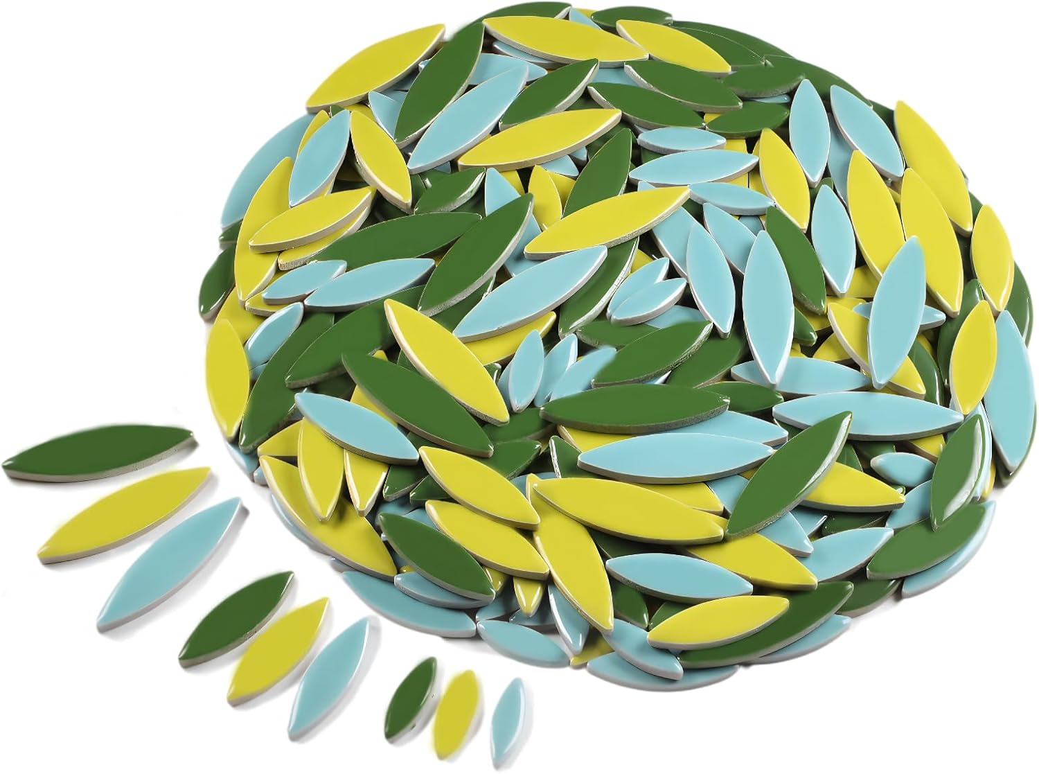 VerzTile Mosaic Tiles for Crafts - Petal Shaped Ceramic Tile Craft Hobbies & Art Projects 39 Color Options Endless Creativity DIY Design (Light Green Mix)
