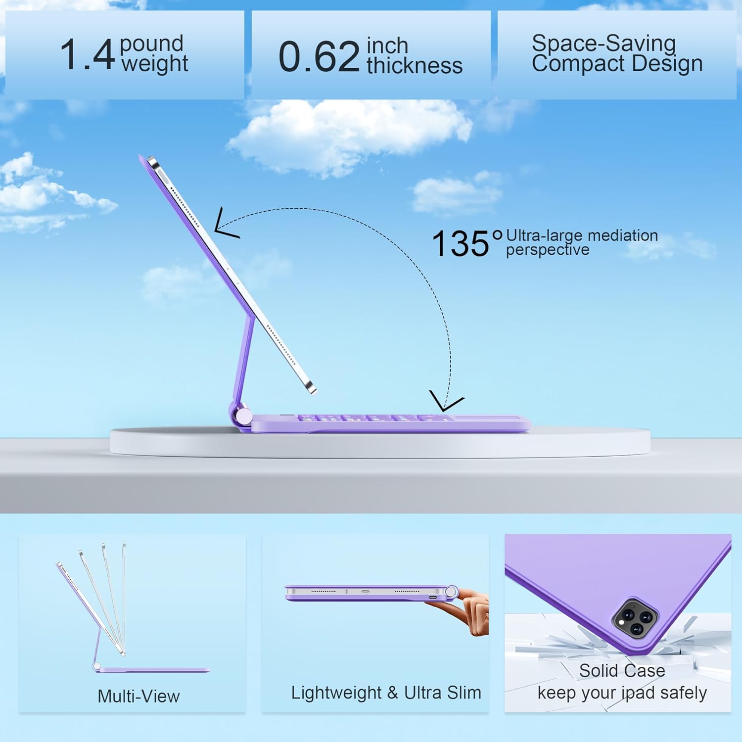- Case Keyboard for iPad with Floating Cantilever Design: The unique floating cantilever design, Innovative and intuitive, the floating cantilever design of the Edge allows for effortless adjustment to your preferred viewing angle. Whether you’re presenting a slideshow, watching your favorite show, or reading a book, this flexible design ensures you get the perfect viewing angle every time. The ability to flip and rotate the iPad easily transforms it into a mini-computer, making it incredibly versatile. The case can also be set up in portrait mode for a better viewing experience.