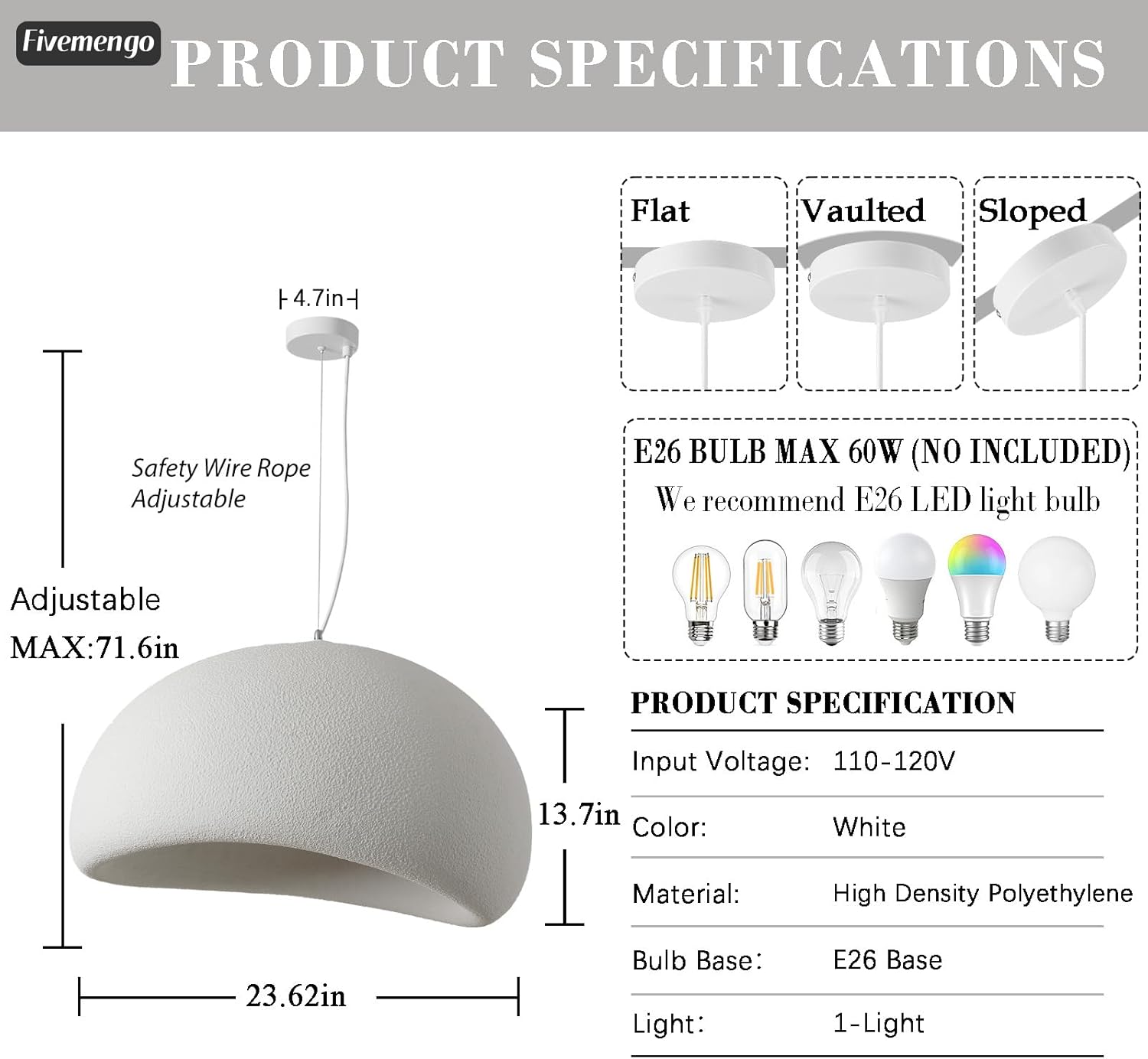 - SIZE: 23.6 inches in diameter, E26 base, perfect for kitchen islands, dining areas, and living spaces requiring focused illumination; bulb not included