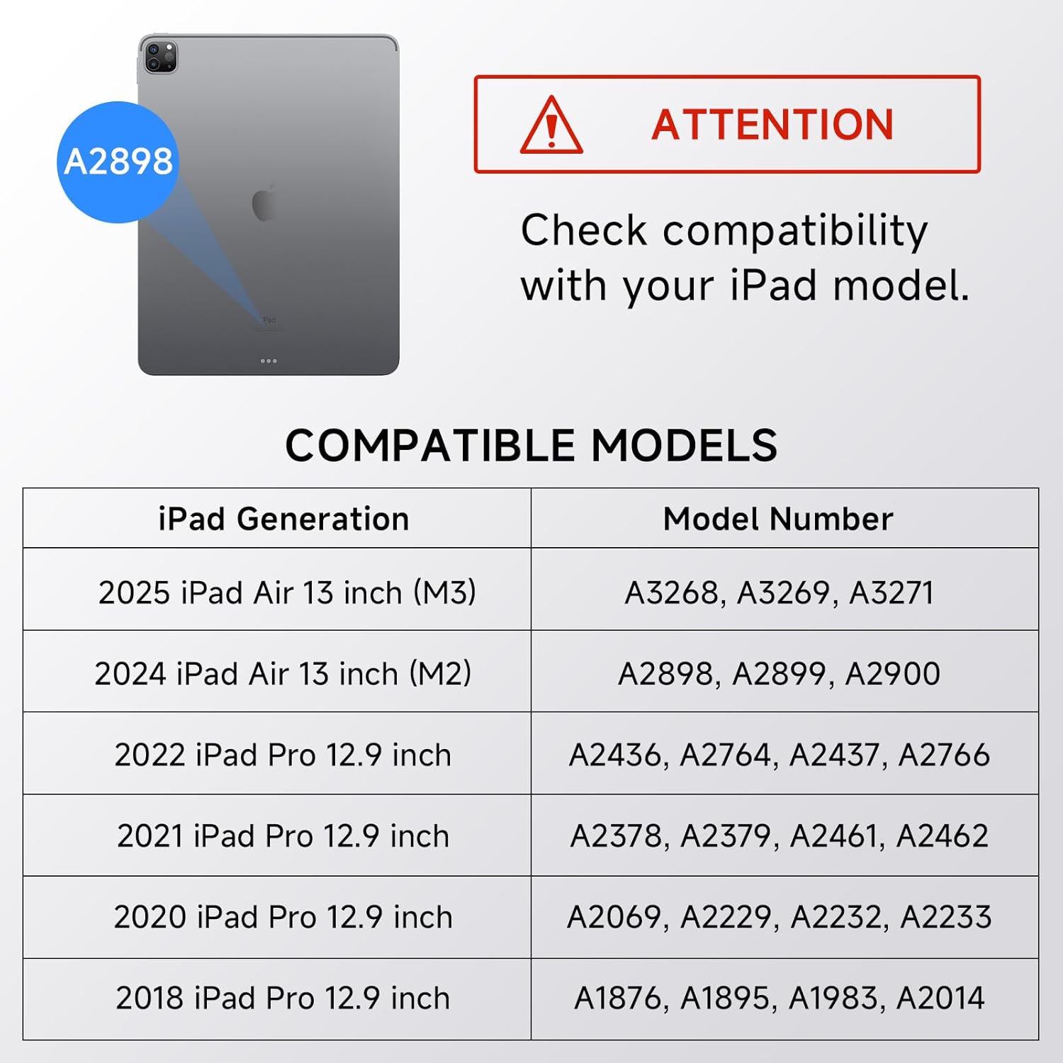 - Compatible Devices : 2024 iPad Air 6th 13 inch (M2), 2025 iPad Air 7th 13 inch (M3), Tablets, iPad Pro 12.9 inch (6/5/4/3th Gen) 2024 iPad Air 6th 13 inch (M2), 2025 iPad Air 7th 13 inch (M3), Tablets, iPad Pro 12.9 inch (6/5/4/3th Gen)