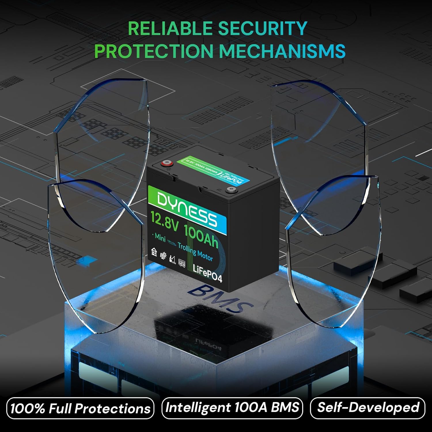 - 【Premium A+ Grade LiFePO4 Cells】Dyness 12V 100Ah lithium battery made with high quality grade A+ LiFePO4 battery cells that have up to 10-year lifespan, delivers superior energy density, ensuring longer runtime and reliable performance for your applications.