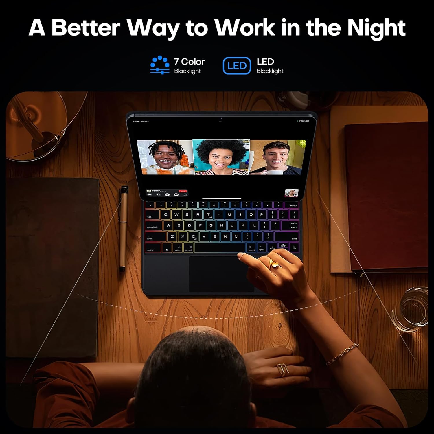 iPad Pro 13 Inch Case with Keyboard (M4, 2024) - 7-Color Backlit Magic Keyboard Case, Features Easy-Set Magnetic Stand, Built-in Multi-Touch Trackpad & Wireless Connectivity, Black