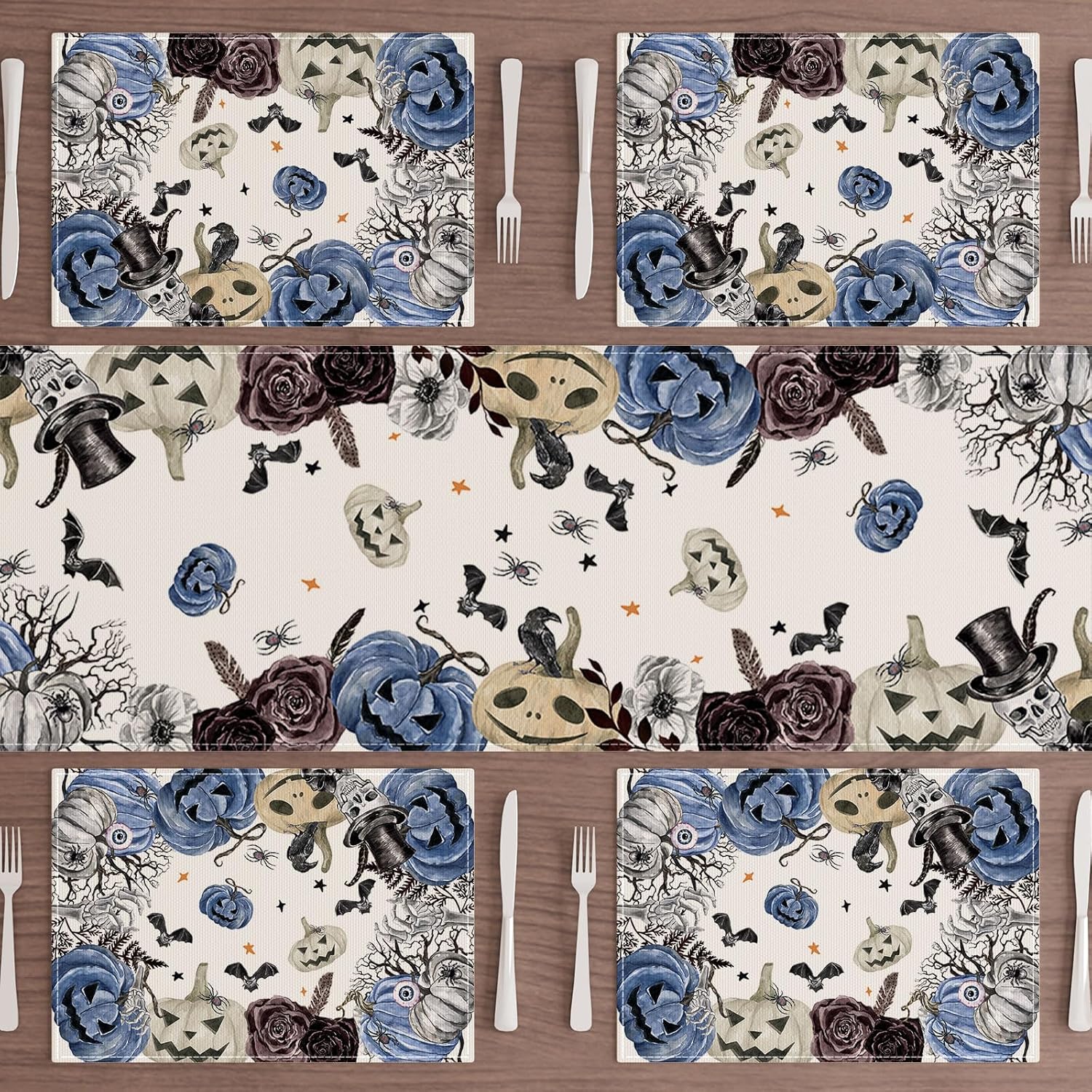 XCHI Spooky Blue Pumpkin Halloween Placemats Set of 4 Table Mats for Party Home Kitchen Dining Table Decorations 12x18 Inch