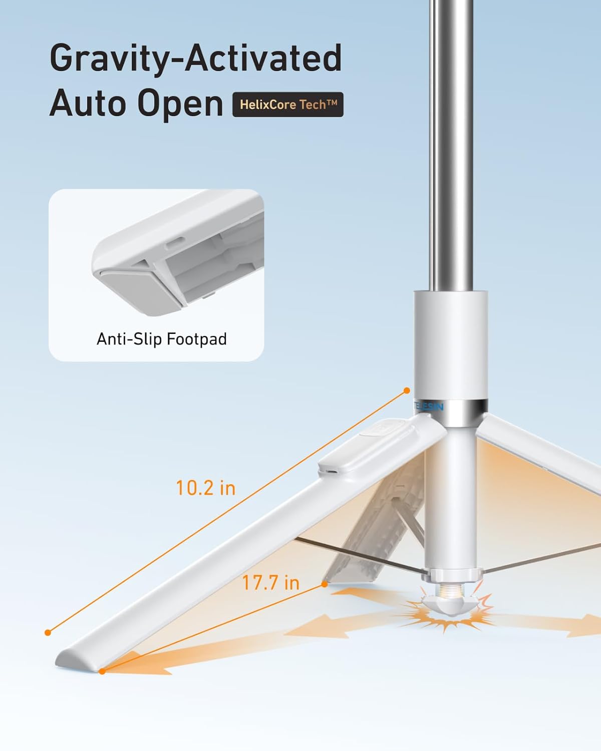 - Drop to Open, Start Shooting in 1 Second: No more fumbling with locks. Tilt the phone tripod downward, and HelixCore Tech auto-deploys instantly. The Telesin cell phone stand is perfect for capturing fast moments (sunset, pets, kids) without missing a shot.