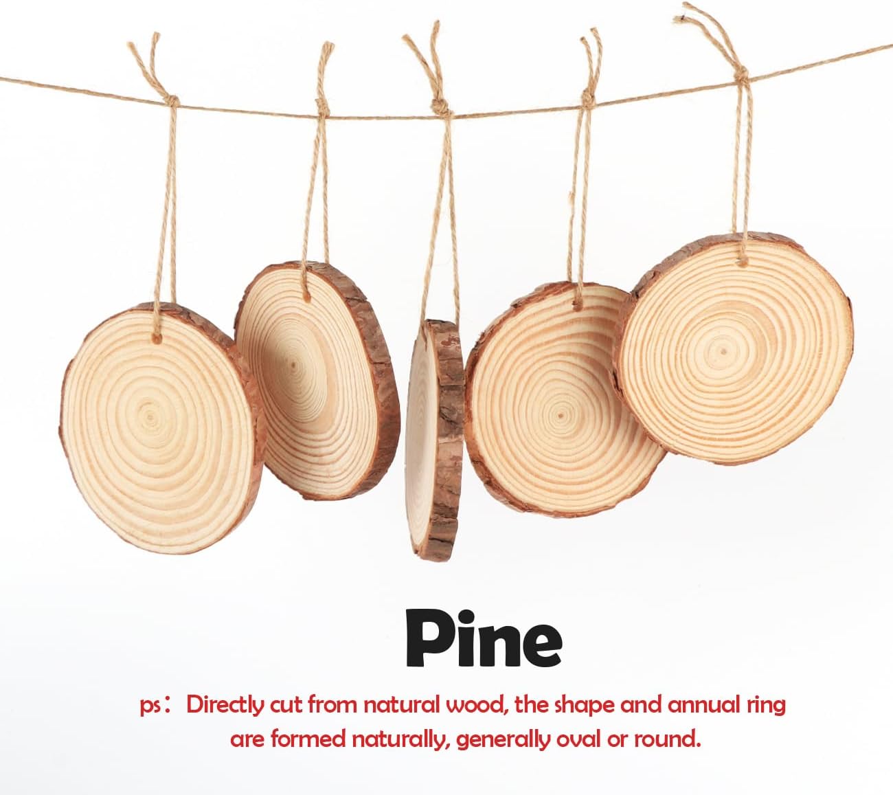 - [Selected Natural Slices]Each of 30 wood slices features unique natural shapes (avg. 3.1"-4"/8-9cm diameter, 1cm thick) 10m twine bundles with intricate growth rings and preserved bark edges for organic charm.