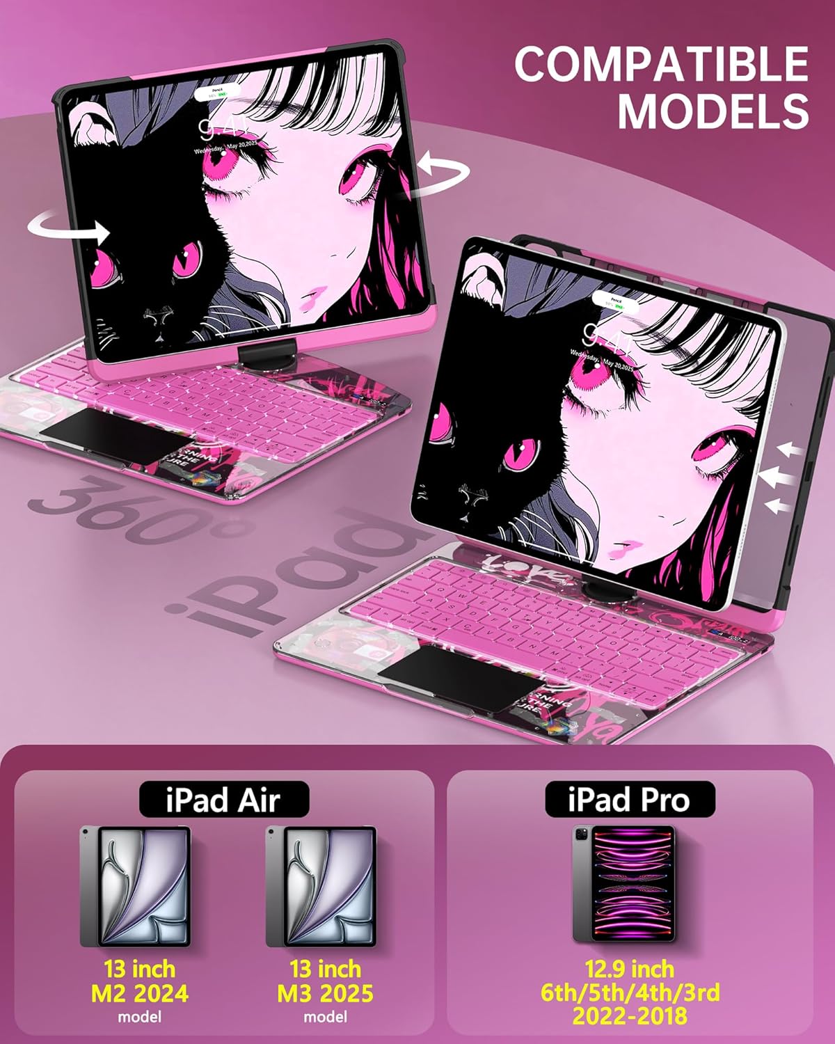 - ✅【Compatible with iPad Air & Pro】 Fits iPad Air 13" (M3/M2, 2025/2024), Pro 12.9" 6th/5th/4th/3rd (2022-2018). ❗ Not for Pro 13" M4 2024 ❗ Check and confirm model before purchase.