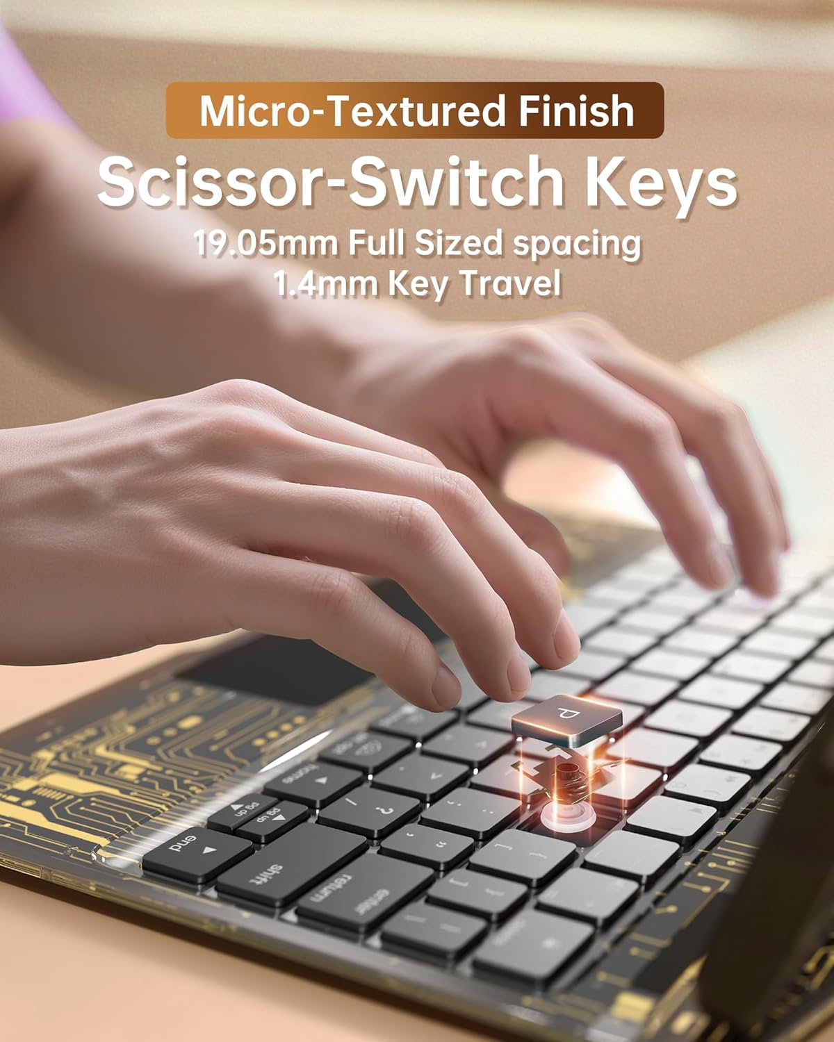 - ✅【Multi-Touch Trackpad & Indicator】 Supports swipe, pinch, scroll gestures for precise navigation. Display shows battery, Bluetooth, Caps Lock status.