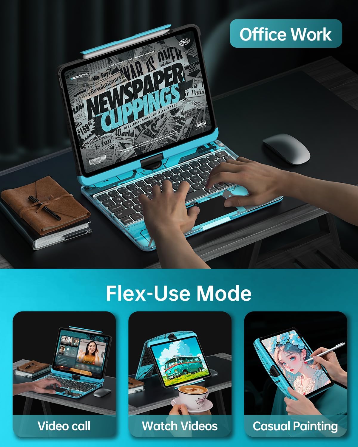 Intermerge for iPad 9th 10.2 inch Keyboard Case, 360° Transparent Multi-Touch Trackpad, 7-Color Backlit Keyboard, Pencil Holder, Type-C, Power Indicator for 9th/ 8th/ 7th - Nebula Core X