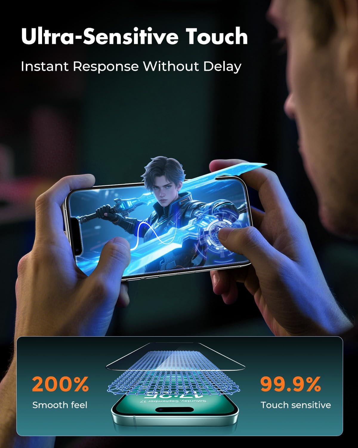 - Clarity & Sensitivity: Our ultra-thin screen protector is 0.01 inches thick, nearly invisible, and offers 99.9% clarity. Enjoy a vibrant display with silky smooth touch sensitivity for quick, natural responses.