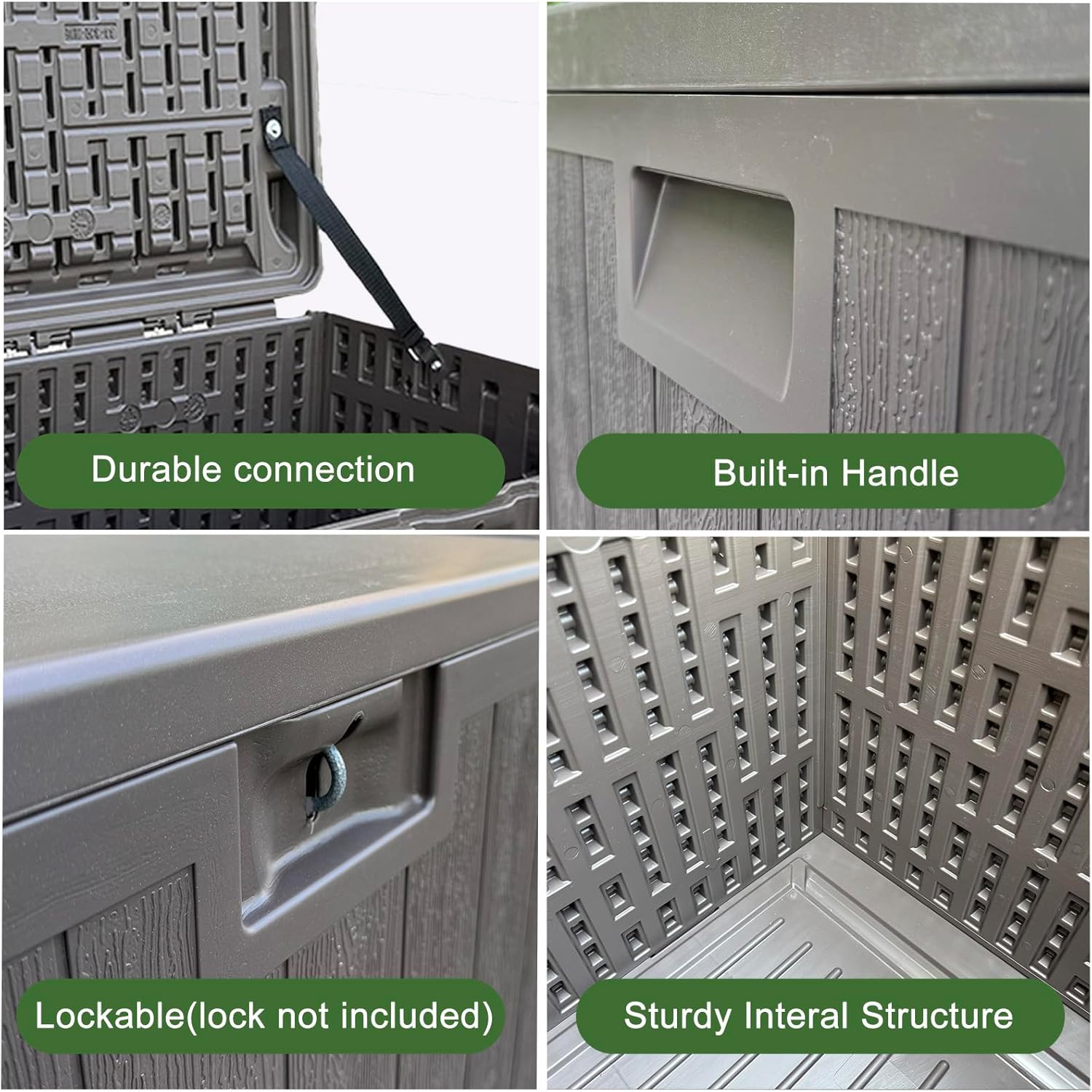 - Durable Resin Construction: Built with double-layered resin, this outdoor waterproof deck box ensures long-lasting reliability and enhances strength and durability for long-term use
