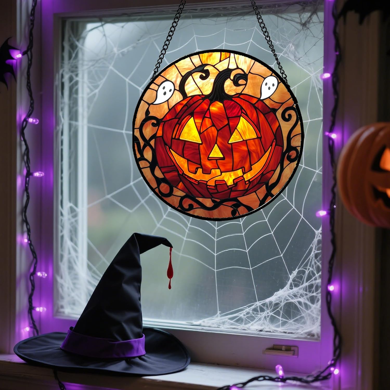 - Easy to Hang & Display: Comes with a sturdy hanging chain. You can effortlessly hang it on any window, door, or wall. No complex installation needed, allowing you to quickly decorate your home for Halloween parties or daily festive vibes.