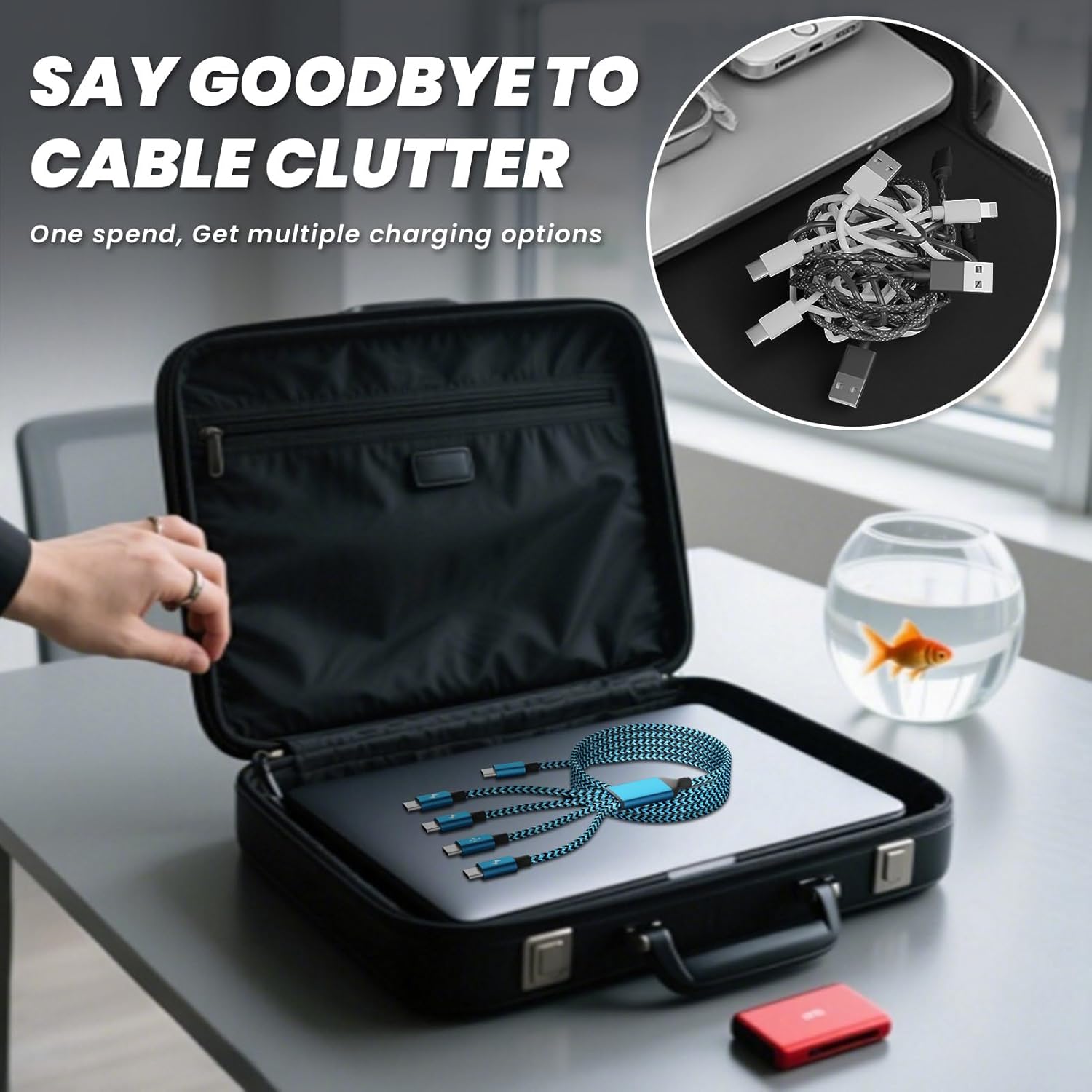 - 【Safe and Reliable】The usb c multi charging cable adopted *Thickened Tinned Copper Wire* and E-mark Chip, which ensures Safer & More Stable Charging and is more friendly for the battery life of your devices.the durable nylon braid prevents this multi phone charger cord from tangling, 20,000+ bending lifespan of the universal usb charging cables can meet long-term daily use.