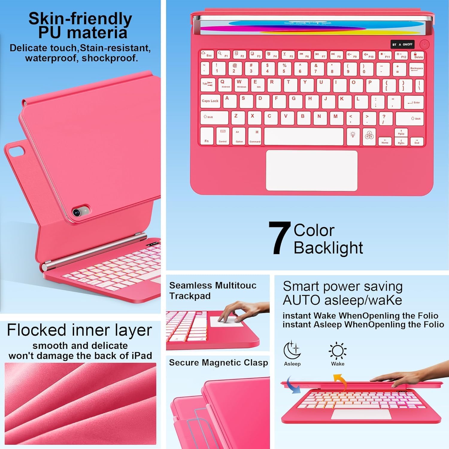 - 7-Color Backlit Keyboard Case for iPad 11th/10th Gen:From dawn to dusk, adapt effortlessly! Adjusting 7 backlight and 3 levels of brightness ensures clear visuals in every setting, enhancing your immersive experience.
